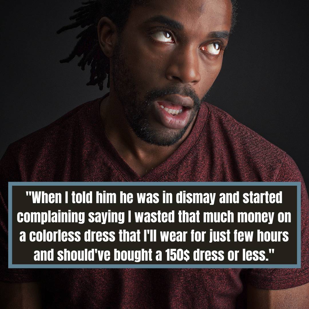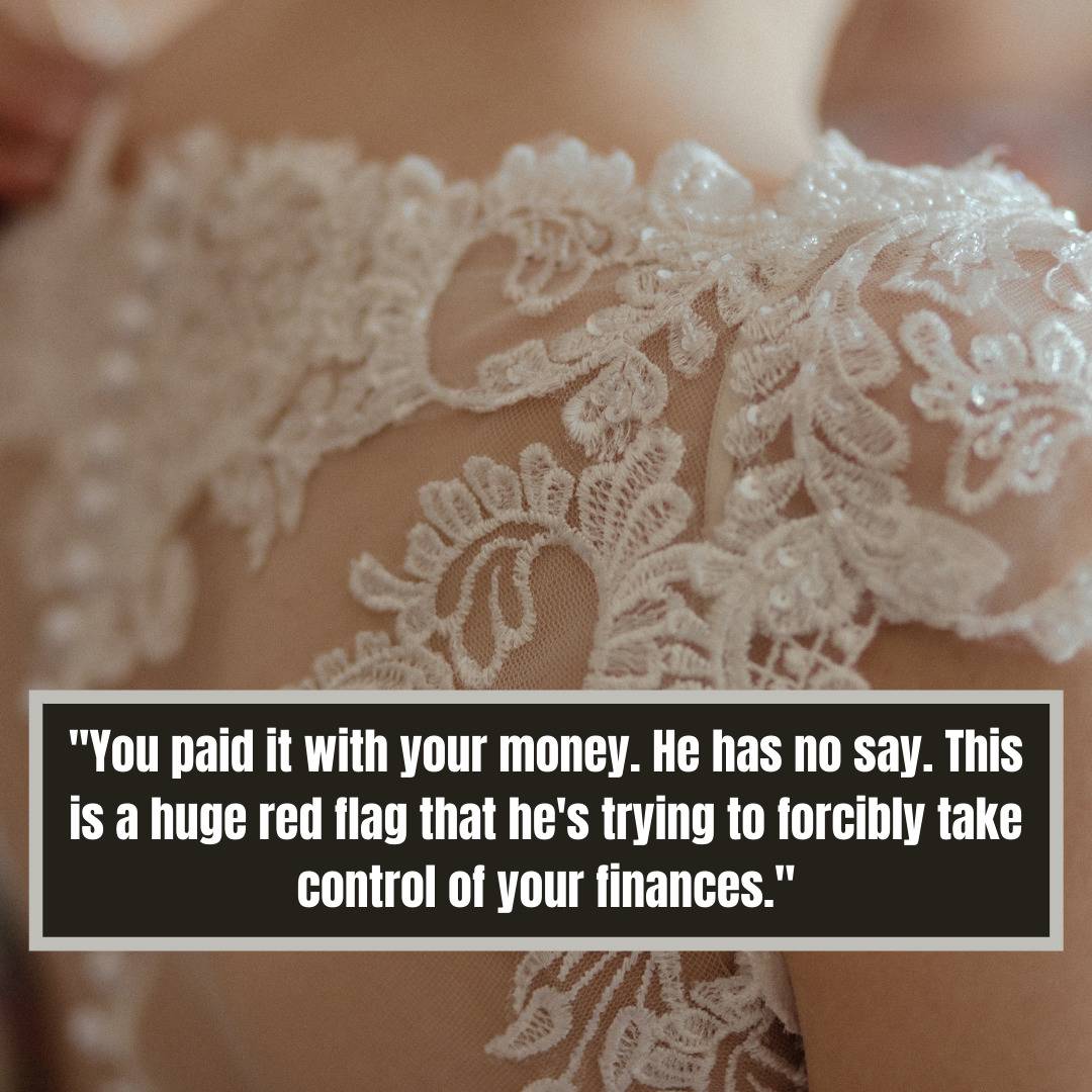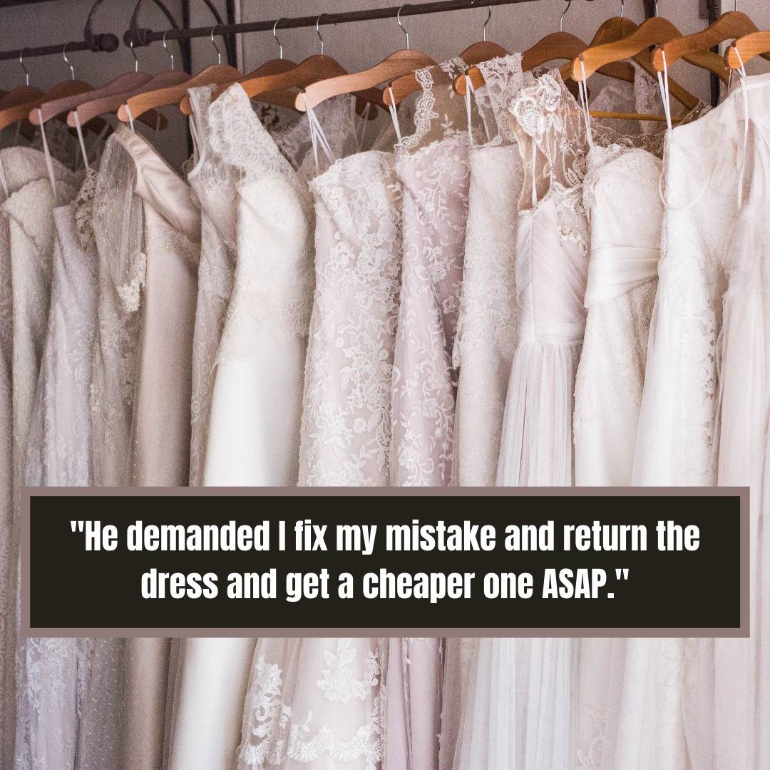 Her fiancé wanted her to take the dress back and find a cheaper one.