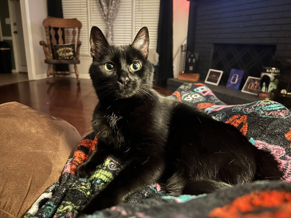 Someone’s ready for spooky season! This jet-black beauty looks like a Halloween icon, all set for haunted hijinks. Black cats really do bring extra magic to the festivities—Halloween and beyond.