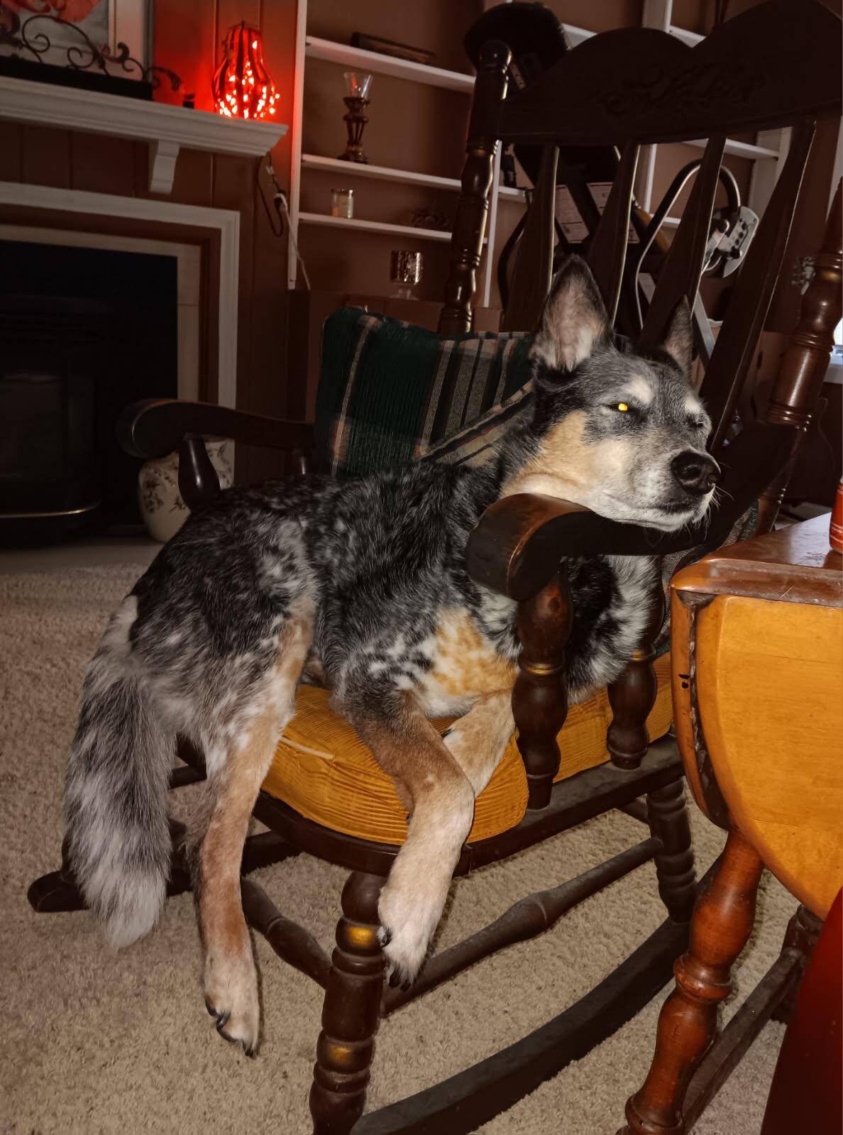 Living large and loving life! This pup knows how to lounge with style and soak up every bit of comfort. Living his best life and making the rest of us wish for a chair as comfy as that rocking one.