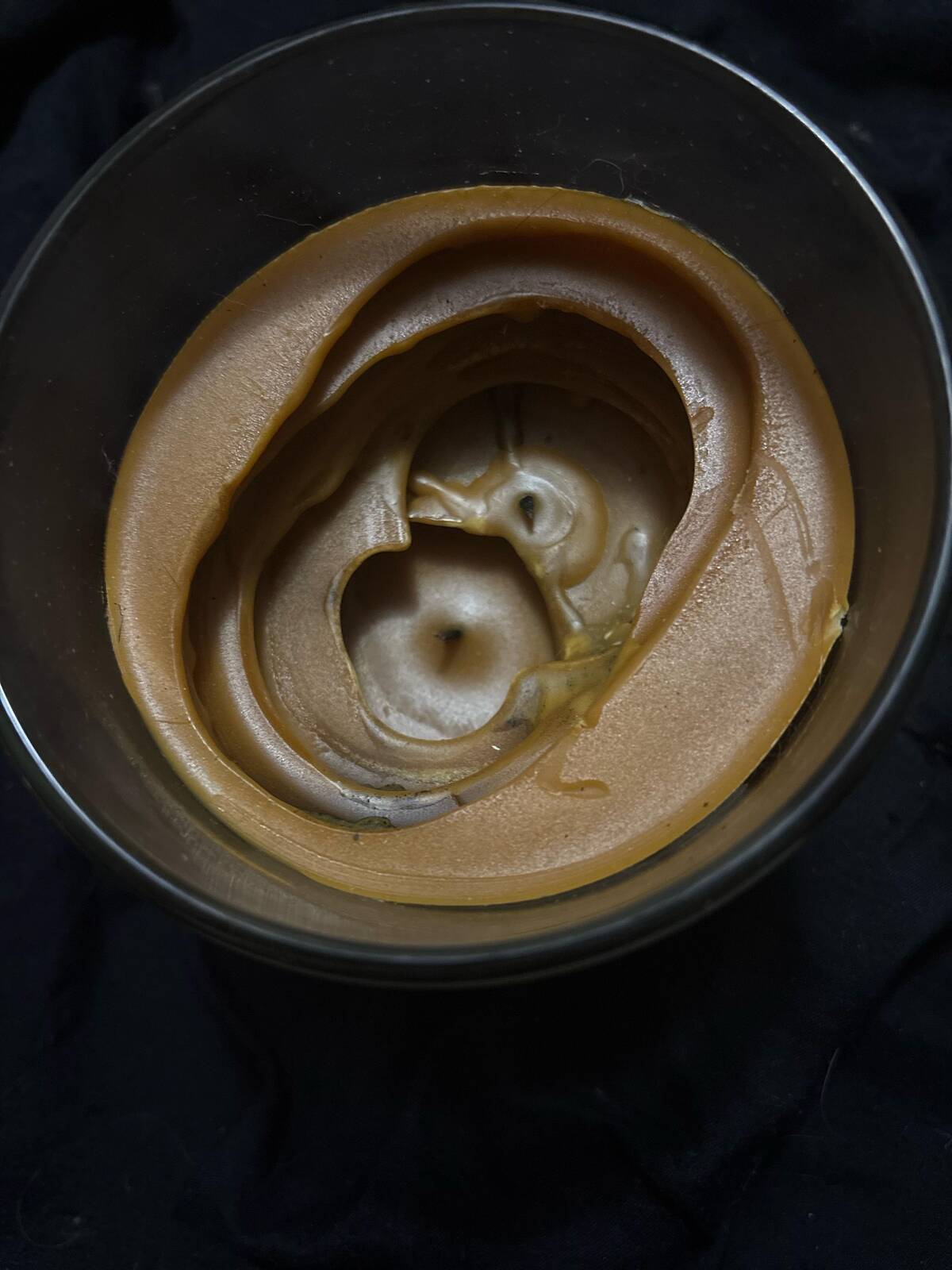 At first glance, this could be a dream swirl of creamy caramel. But common sense kicks in—no, it’s a candle (right?). The urge to sneak a gooey spoonful is strong, but my teeth are much happier with real dessert instead.