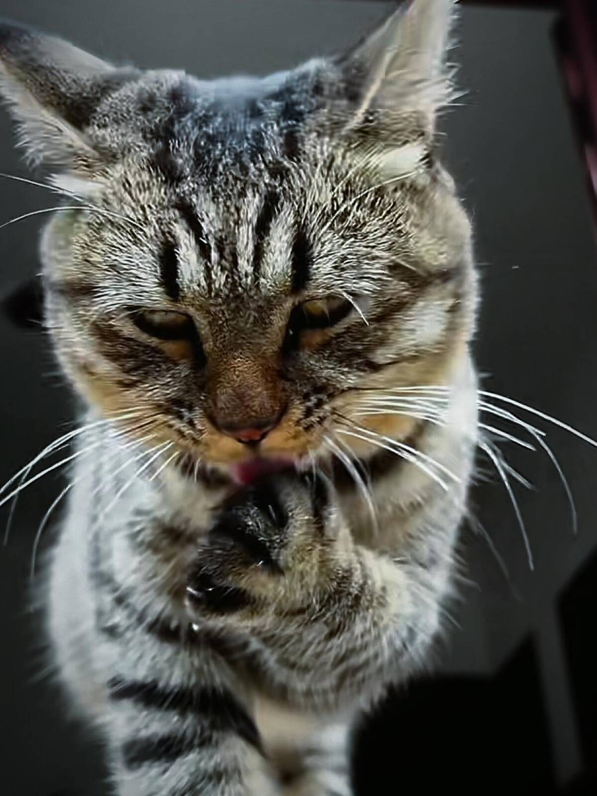 This is the face of someone experiencing pure, unfiltered blep. No thoughts, just tongue. When you’re so relaxed you forget basic mouth logistics—relatable!