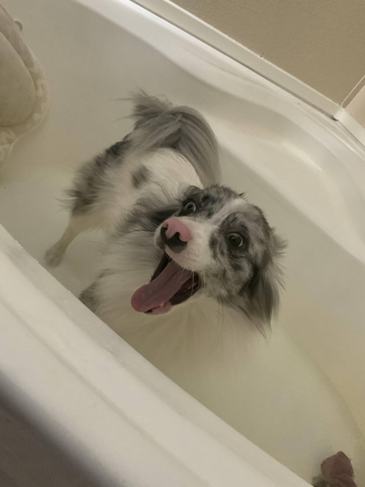 That’s the kind of face that says, ‘Am I in trouble or auditioning for a comedy show? Because I’m ready for both.’ Tongue out, eyes wild, and the ultimate zoomies about to happen. There’s never a dull moment with this kind of energy around.