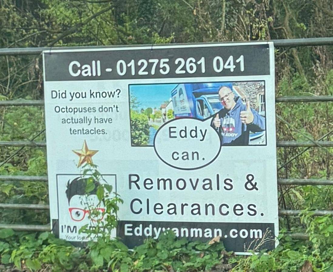 Eddy can do it all, apparently—plus, he’s here to drop some octopus facts on you while he’s at it. It’s the Swiss Army knife of business signs, with a bonus life lesson. I didn’t know I needed these facts, but hey, thanks Eddy!