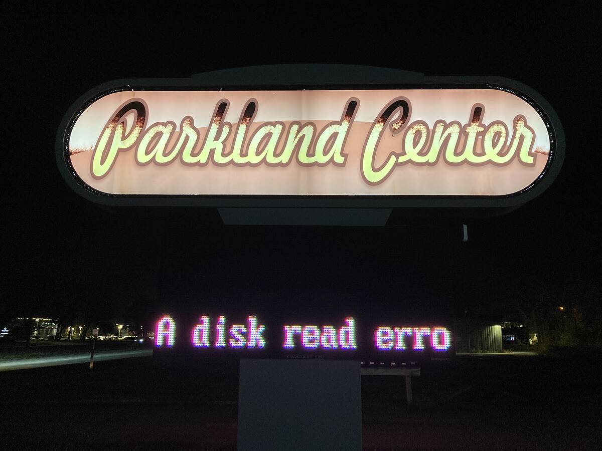 There’s nothing quite like being reminded that even public signage can crash. Technology will always keep us humble (and maybe a little amused) with an untimely ‘disk read erro’. The building’s still open, even if the sign isn’t sure where it is.