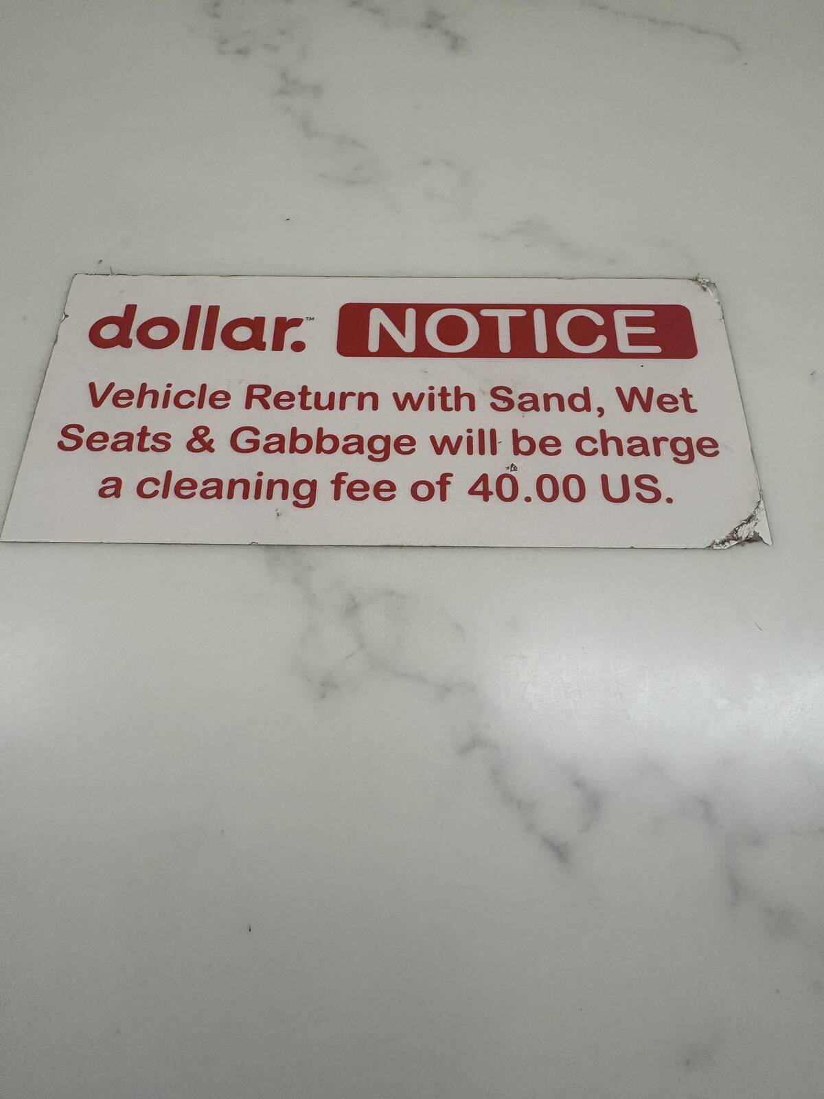 You can almost hear the frustration of whoever typed ‘gabbage’ instead of ‘garbage.’ Somehow it makes the warning about cleaning fees sound both strict and strangely charming. The real question: who’s out here putting cabbage in rental cars anyway?