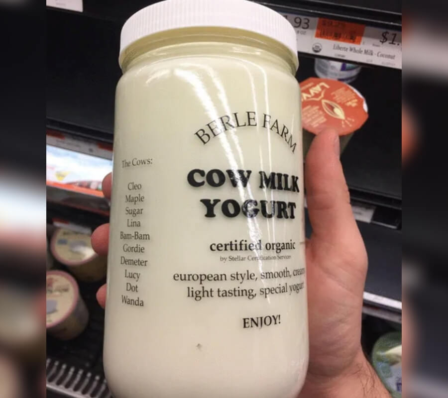 Okay, so I don’t know exactly what cow milk yogurt is or if it’s just a fancy way of saying yogurt. But, I like that they have the names of all the cows this came from.