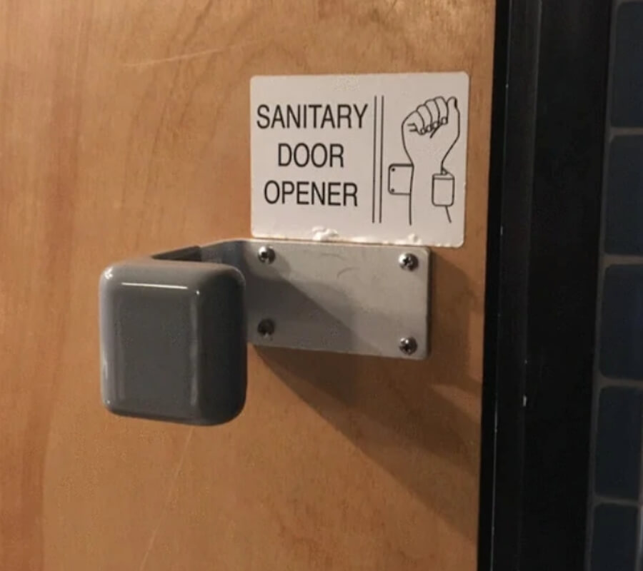 Public door handles are one of the most germ-filled places on planet earth. You have to wrist it.