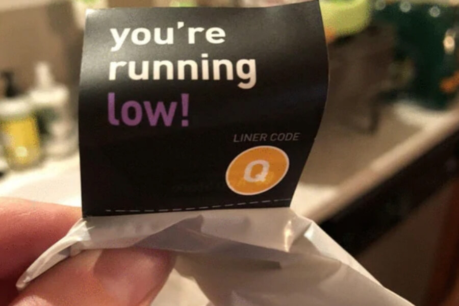 They have patches like these on the garbage bags that are close to the end. That way, you don’t reach into the garbage bag box and be surprised that there’s none left. You were warned. It’s your fault.