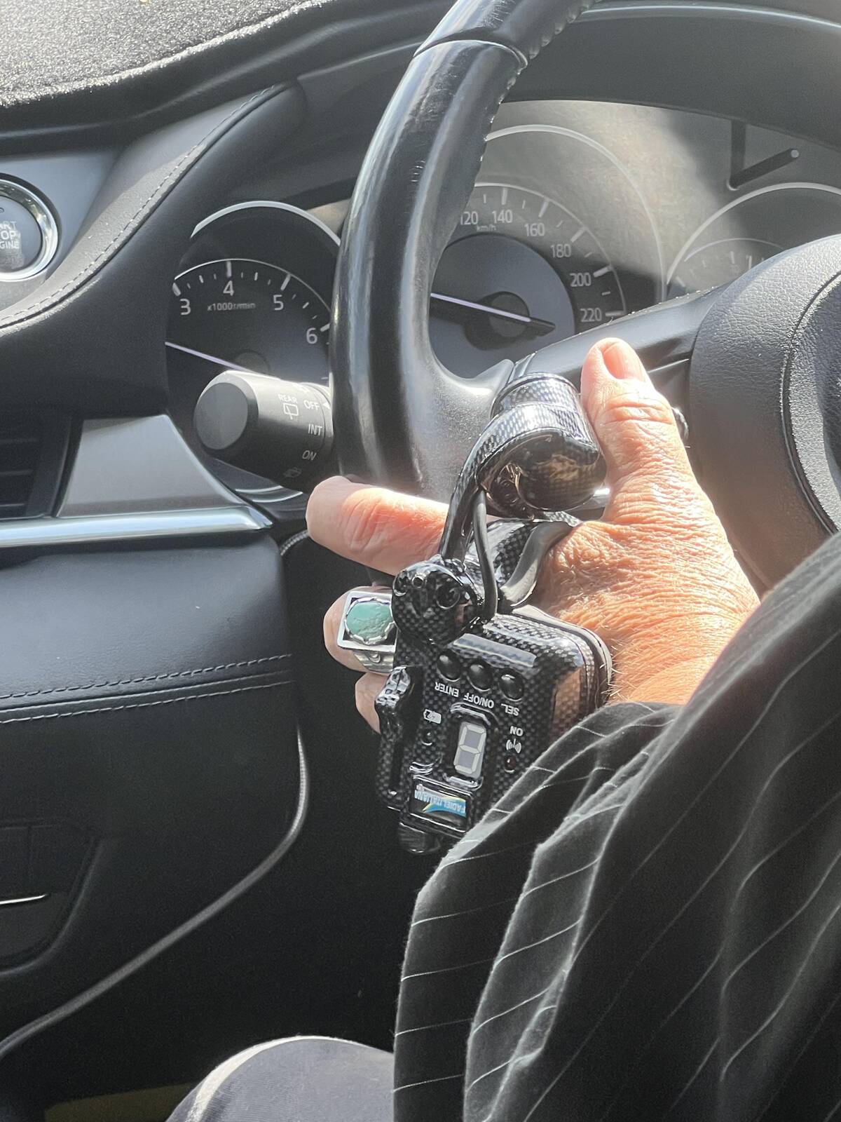 My Uber driver’s got something rigged up on their hand that makes me feel like I’m getting a ride from a futuristic pilot. Whatever this does, it looks like it comes with extra horsepower and bonus sci-fi points. In reality, it’s a hand accelerator disabled accessory device, designed to help drivers with limited mobility control the vehicle safely.