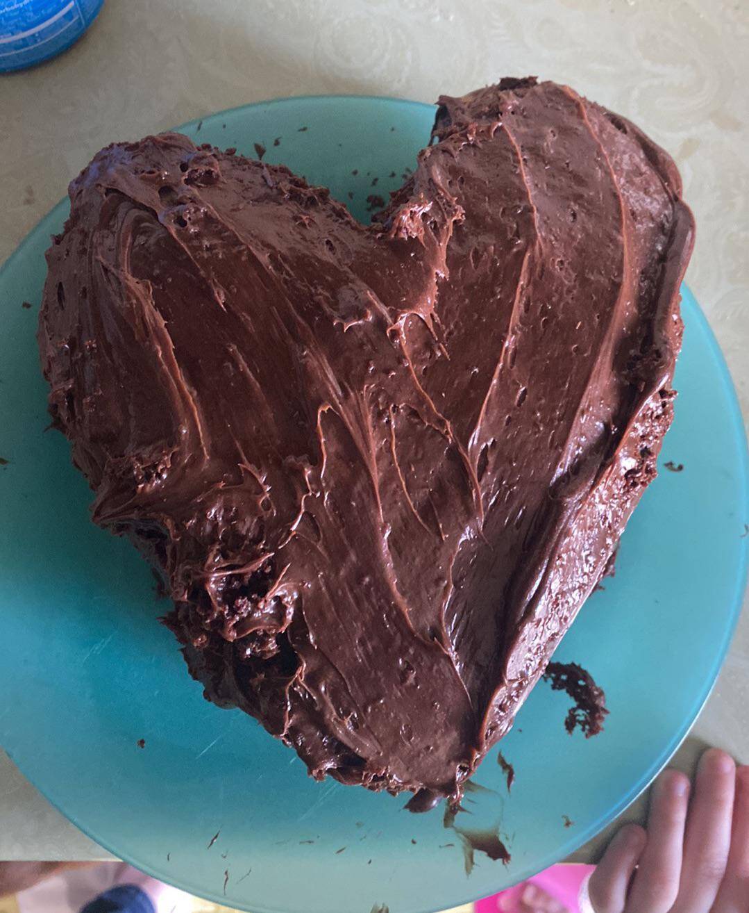 Nothing says romance like a lumpy, chocolate heart-shaped cake. It’s the thought (and perhaps the effort?) that counts!