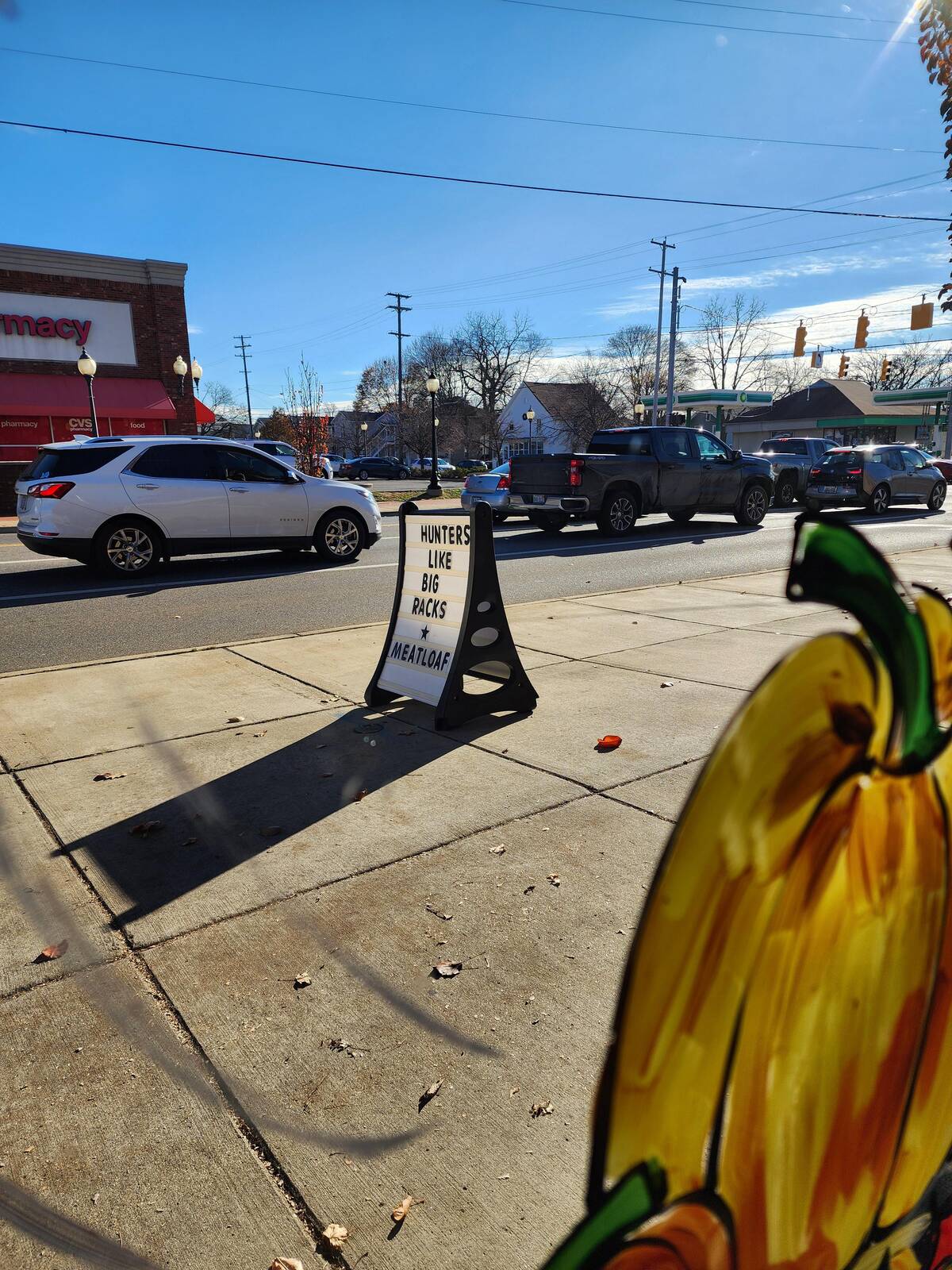 Hunters like big racks—and also, apparently, meatloaf. This sign has layers and priorities, and I can’t help but respect both.