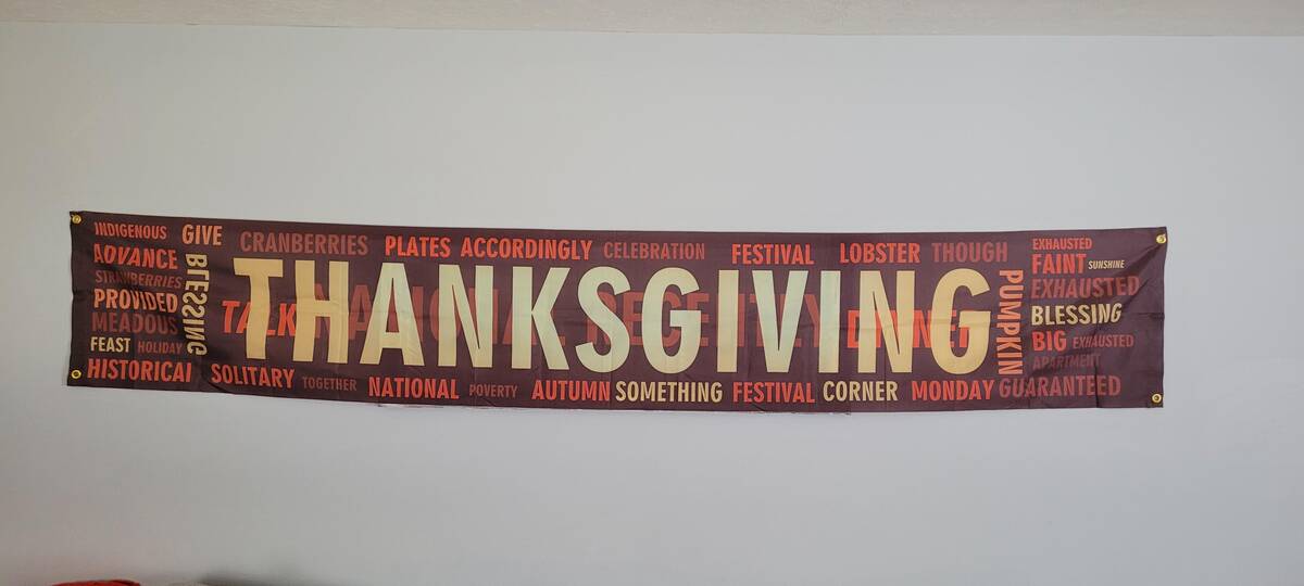 Spot the random words challenge: This Thanksgiving banner is less of a festive greeting and more like ad-libs from a holiday fever dream. Talk about conversation starters!