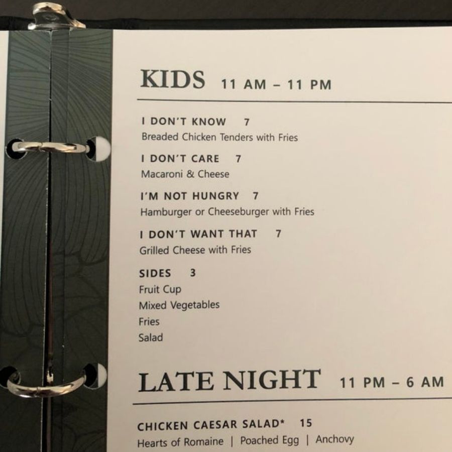 Quite frankly, this doesn’t even need to be a kids menu, this could be a menu for indecisive adults too! You can’t go wrong with chicken tenders or mac & cheese.