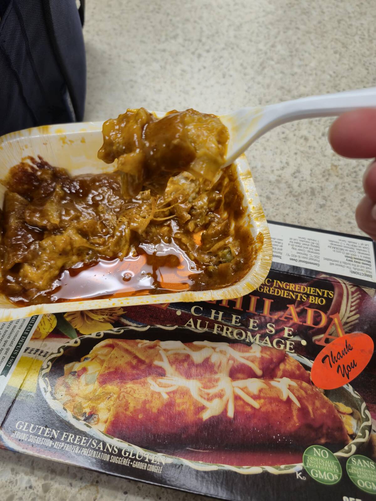 We’ve all had that microwave meal moment—peel back the lid and it doesn’t quite resemble the box, but at least it tastes right. Gluten free enchilada: not photogenic, but it gets the job done where it counts. At the end of the day, flavor trumps looks!
