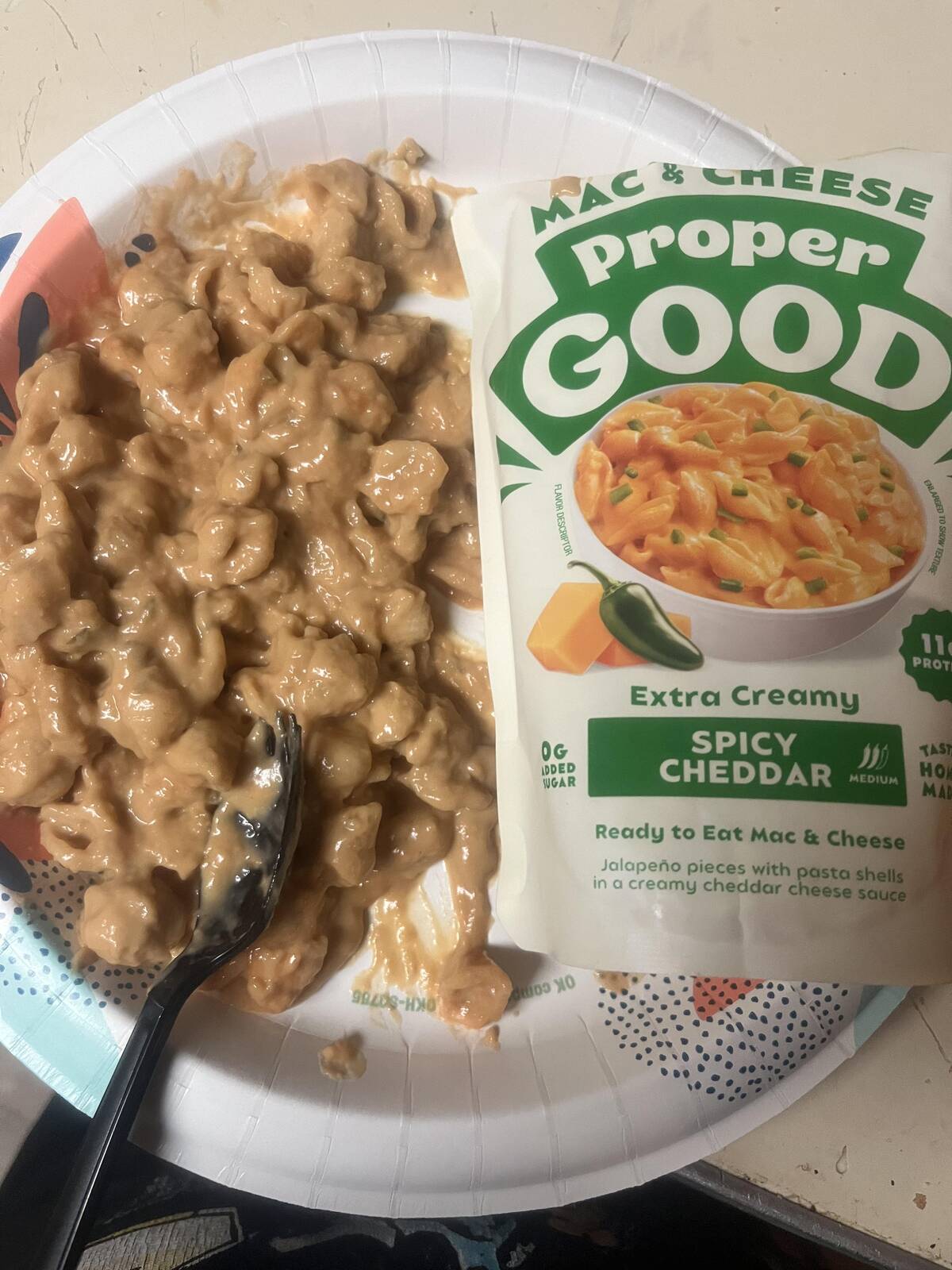 Proper good, you say? The flavor might wow, but the appearance is in ‘beige mystery’ territory. Jalapeño mac and cheese is here to spice up your lunch, not your Instagram. But as long as the taste lives up to the promise, we don’t really need it to be camera-ready, do we?