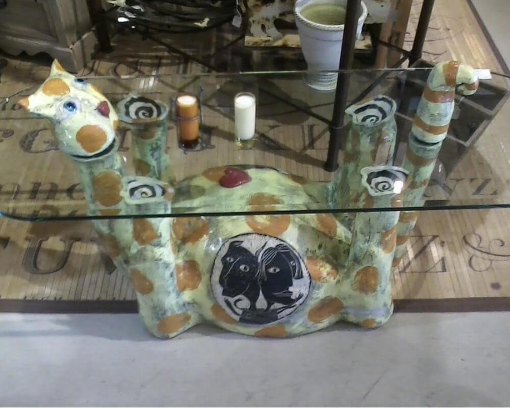 You would think if one were making a cat table, one would use the cat’s legs as the legs of the table and rest the tabletop on the cat’s back.