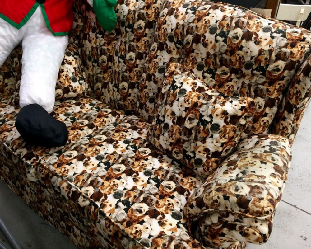 I know dog’s are cool and allI’ll, but haven’t we all decided that we shouldn’t let them on the sofa? I think I’d rather let one actual hairy dog sit on my nice couch than have a couch covered in dog fabric.