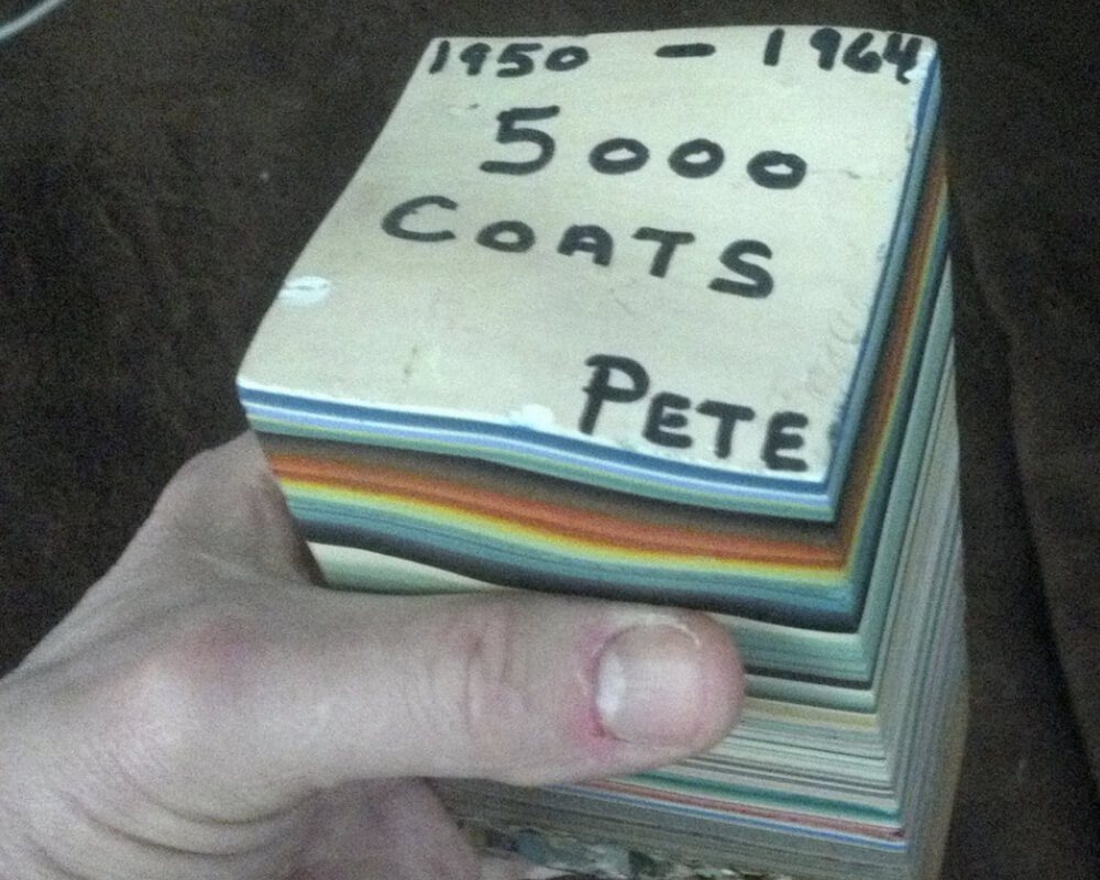 Check out this piece found at a thrift store for three bucks. A guy named Pete painted this block of wood almost every day for fourteen years.