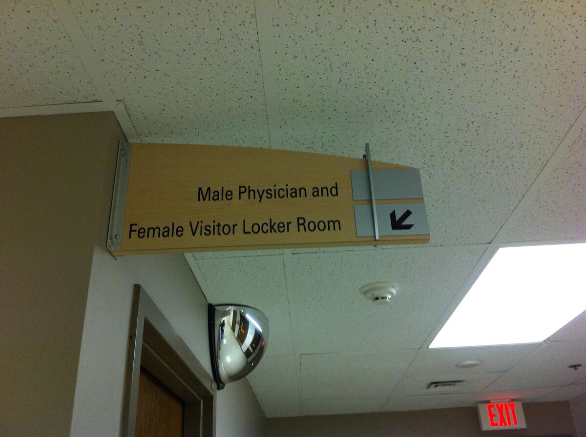So, only male doctors or female visitors can use this locker room? The sign is sending my brain in all sorts of directions. Guess I’ll just change in my car to be safe.