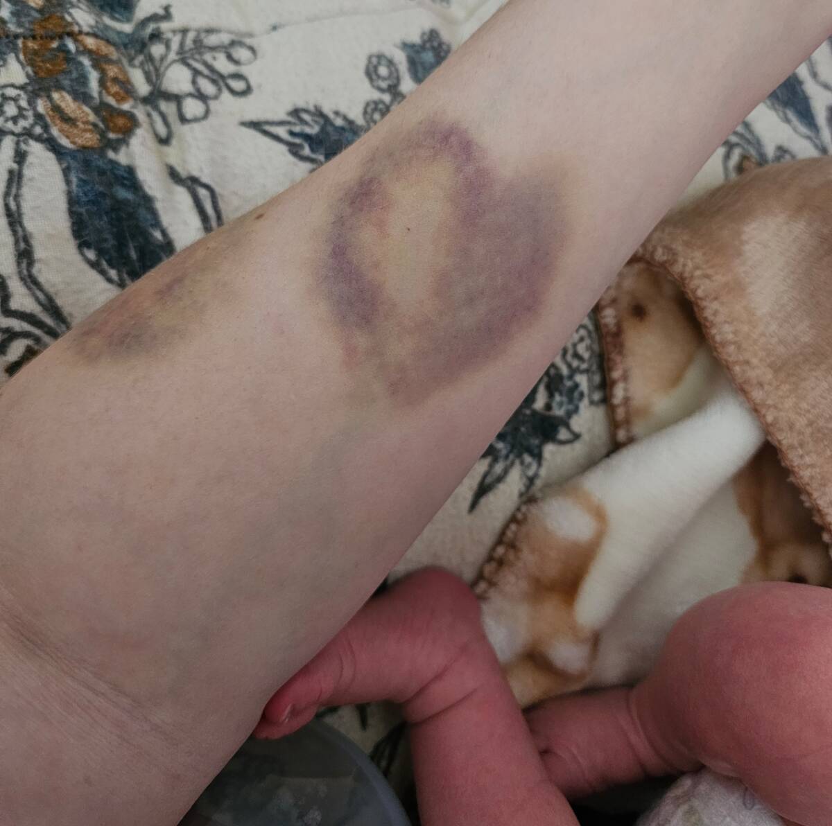 Well, that’s a bruise with a story—who knew childbirth would leave an actual heart-shaped mark? It’s painful, but also weirdly adorable, as if my kid wanted me to have a literal badge of love. Motherhood comes with the wildest souvenirs!