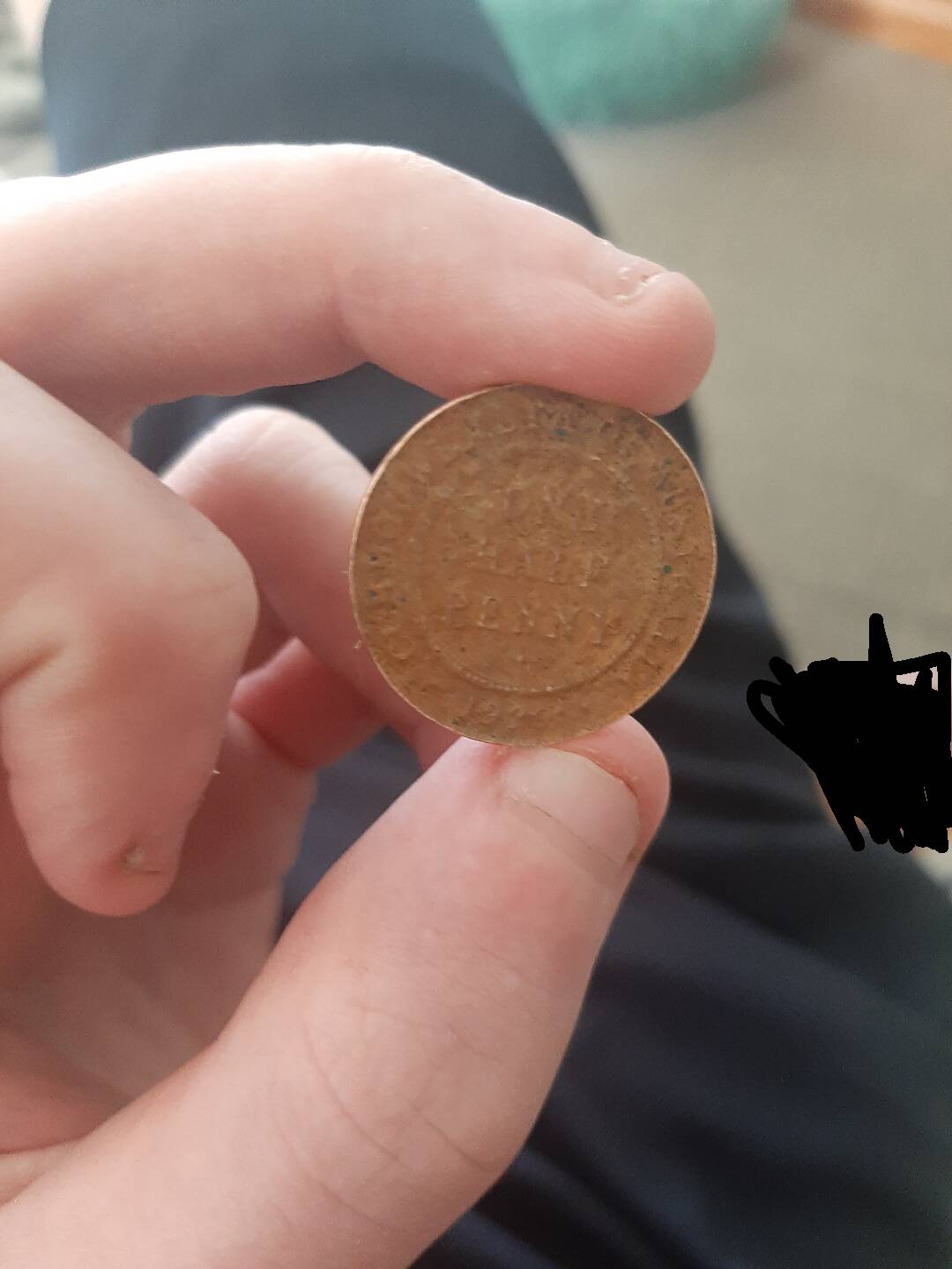 “1929 half penny found on ground.”