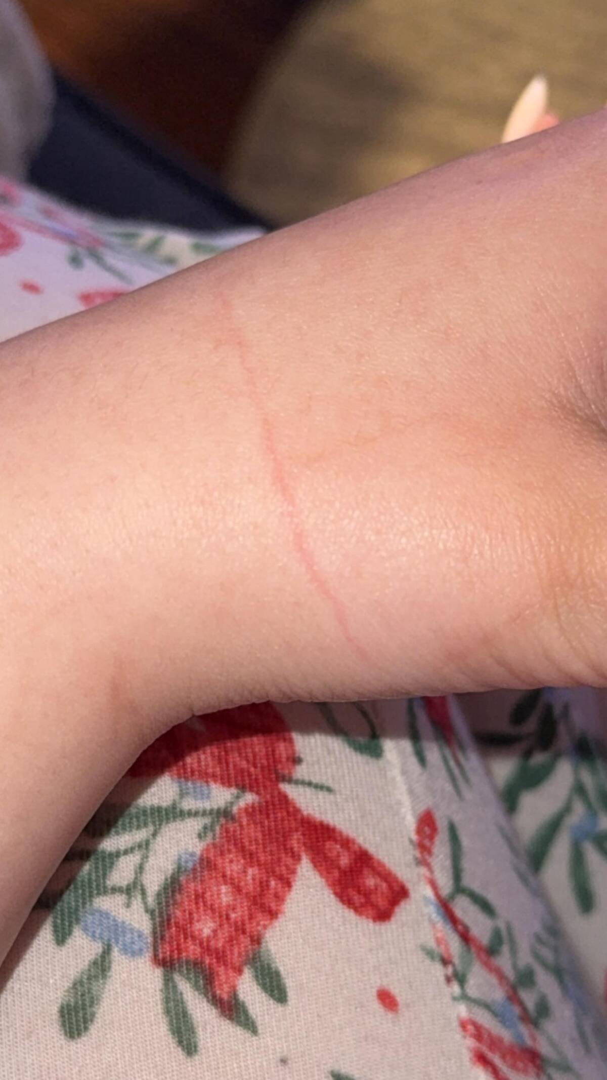 “weird red line on my hand”