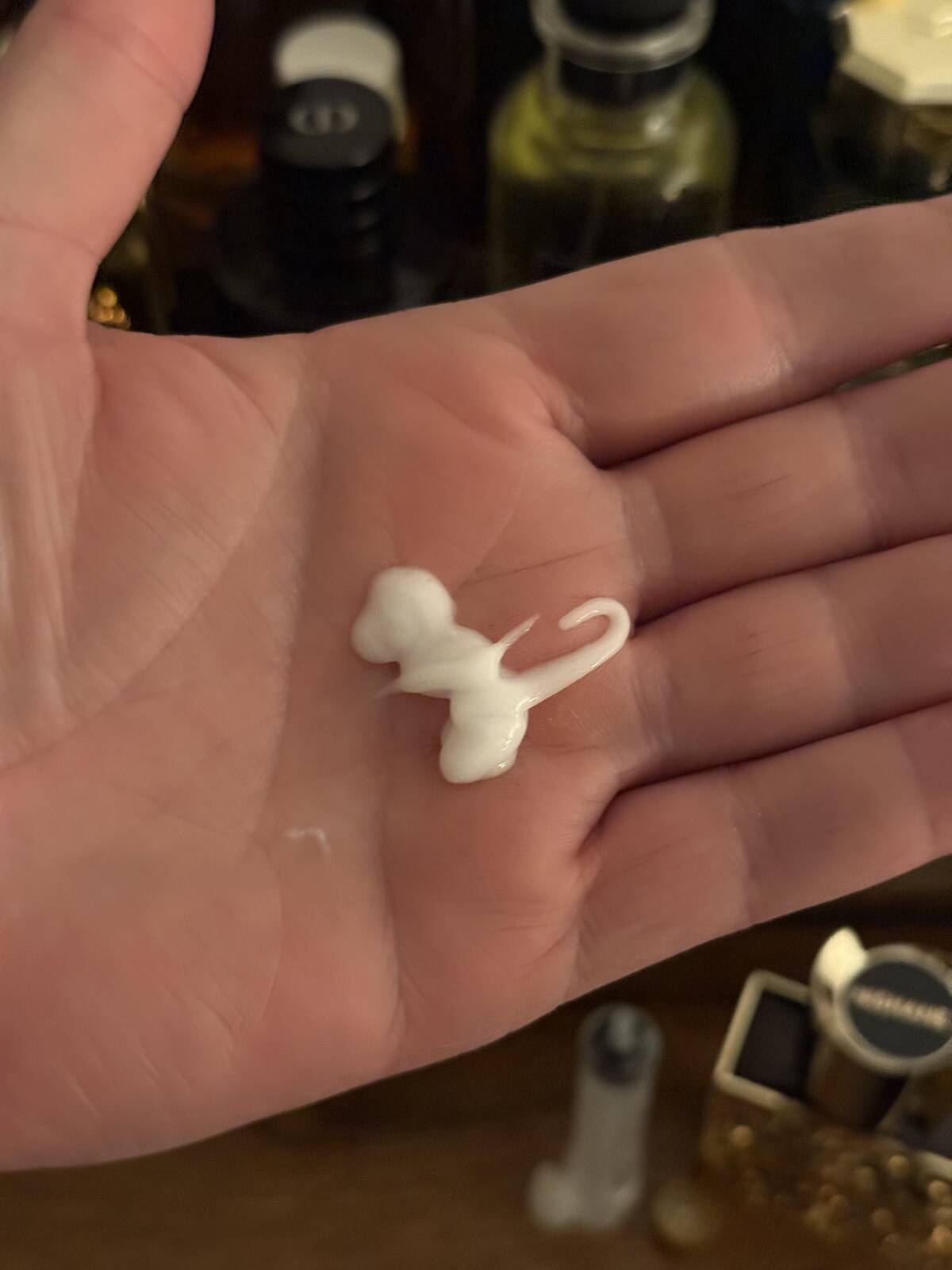 How did my lotion squirt land as a perfect little Charmander? Evolution, but for moisturizing. Now I feel bad about rubbing it in. Should I catch it or just appreciate the newfound art in daily routines?