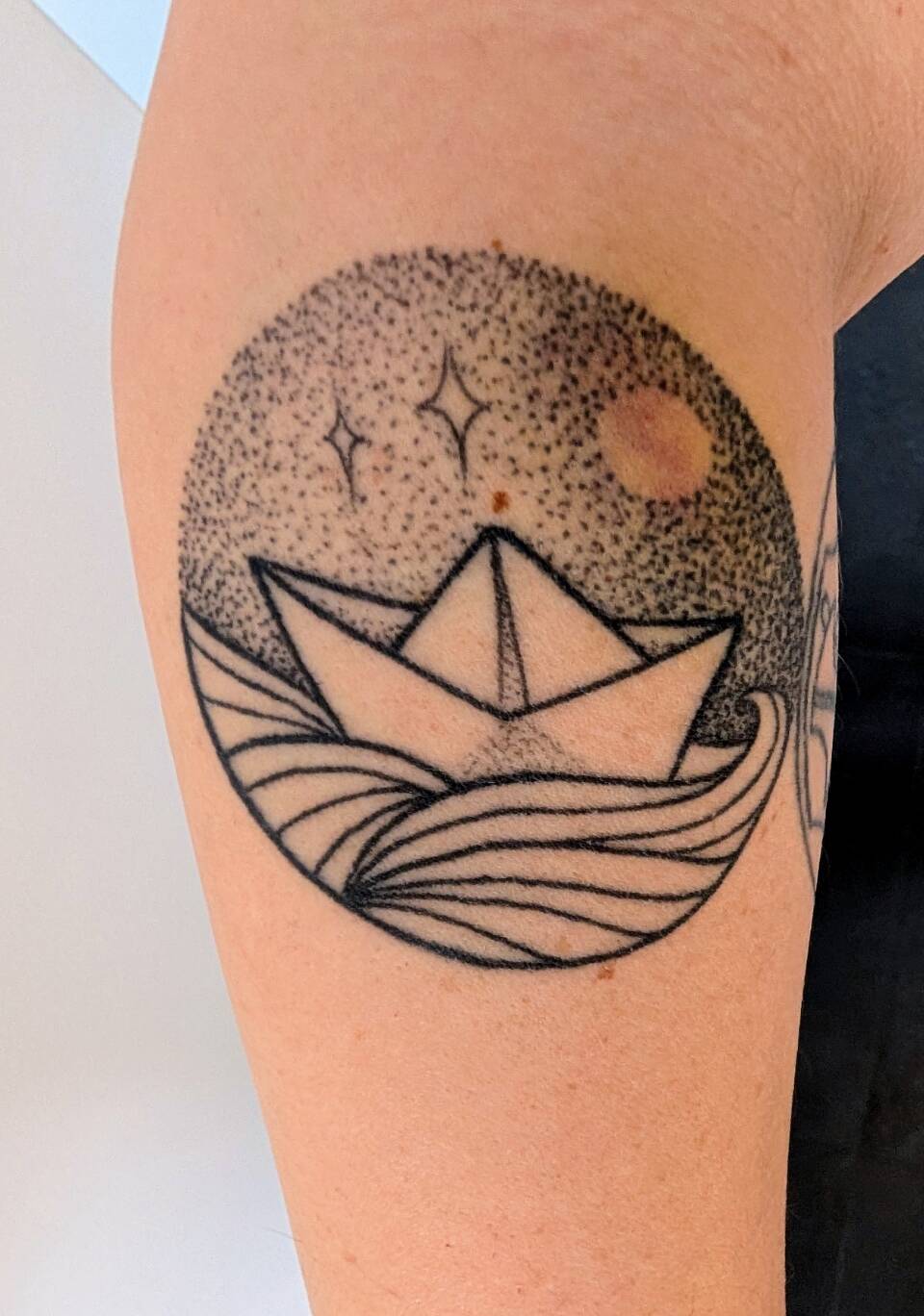 If you’re going to bruise, at least make it an aesthetic bruise. This ink and bruise combo is matching up so perfectly, even the waves are jealous.