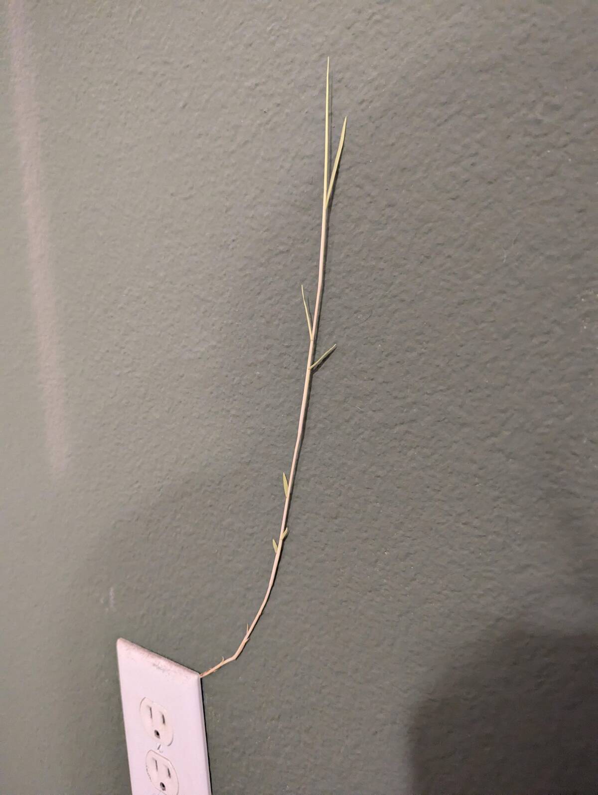 “Moved our bed to find a piece of grass growing out of a hidden outlet.”
