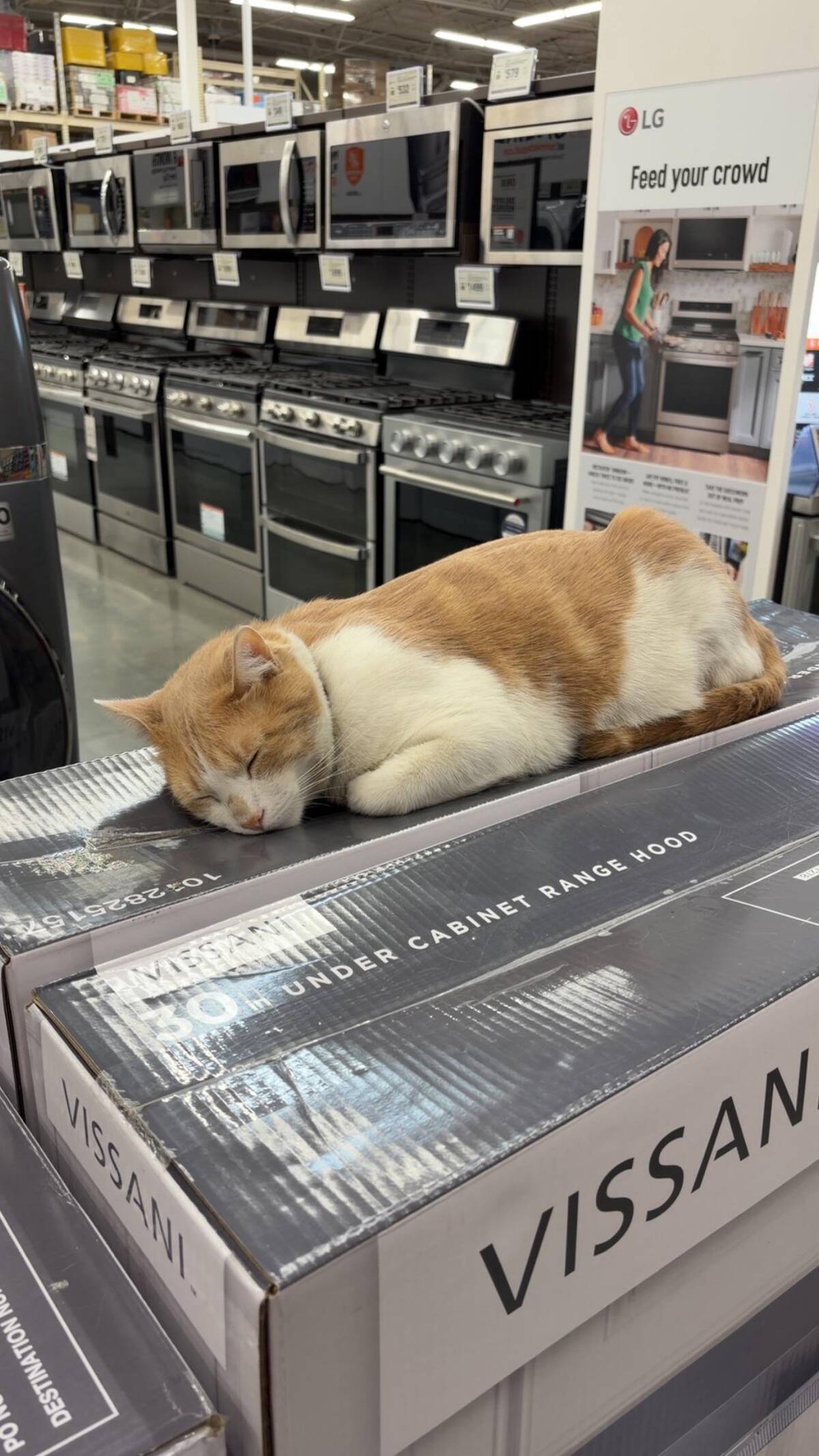 Every store needs a morale officer, and this feline clearly took up the post. I hope it’s on the payroll, or at least getting paid in chin scratches. Who could resist the urge to linger just a bit longer in the appliance section, thanks to this unexpected supervisor?