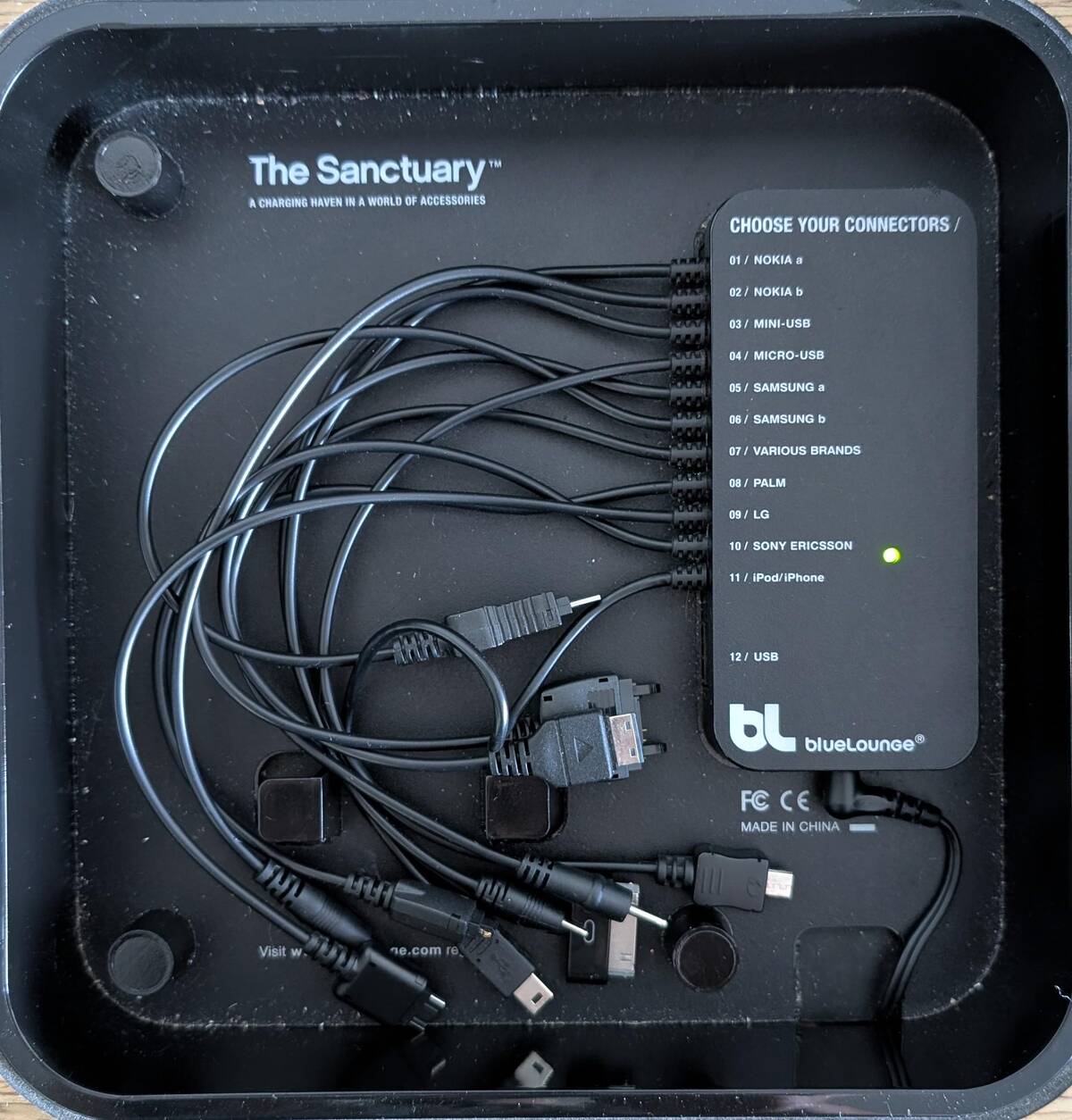 It’s a built-in museum of extinct phone chargers! If you’ve got a Nokia, PalmPilot, or a phone last seen circa 2008, you’re in luck. For everyone else, don’t forget your USB-C cable—sadly, not included.