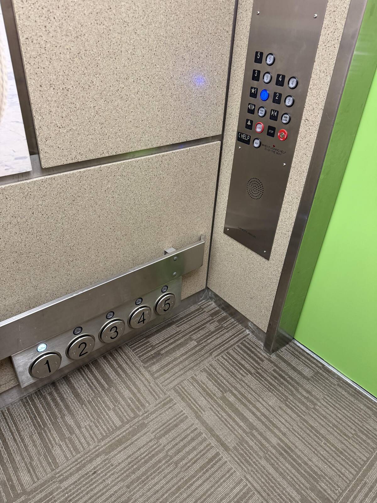 This elevator is ready for some serious accessibility! Buttons to press with your foot just might be the upgrade everywhere needs. It’s the future of clean, hands-free rides—from five floors up to ground level with a simple step.