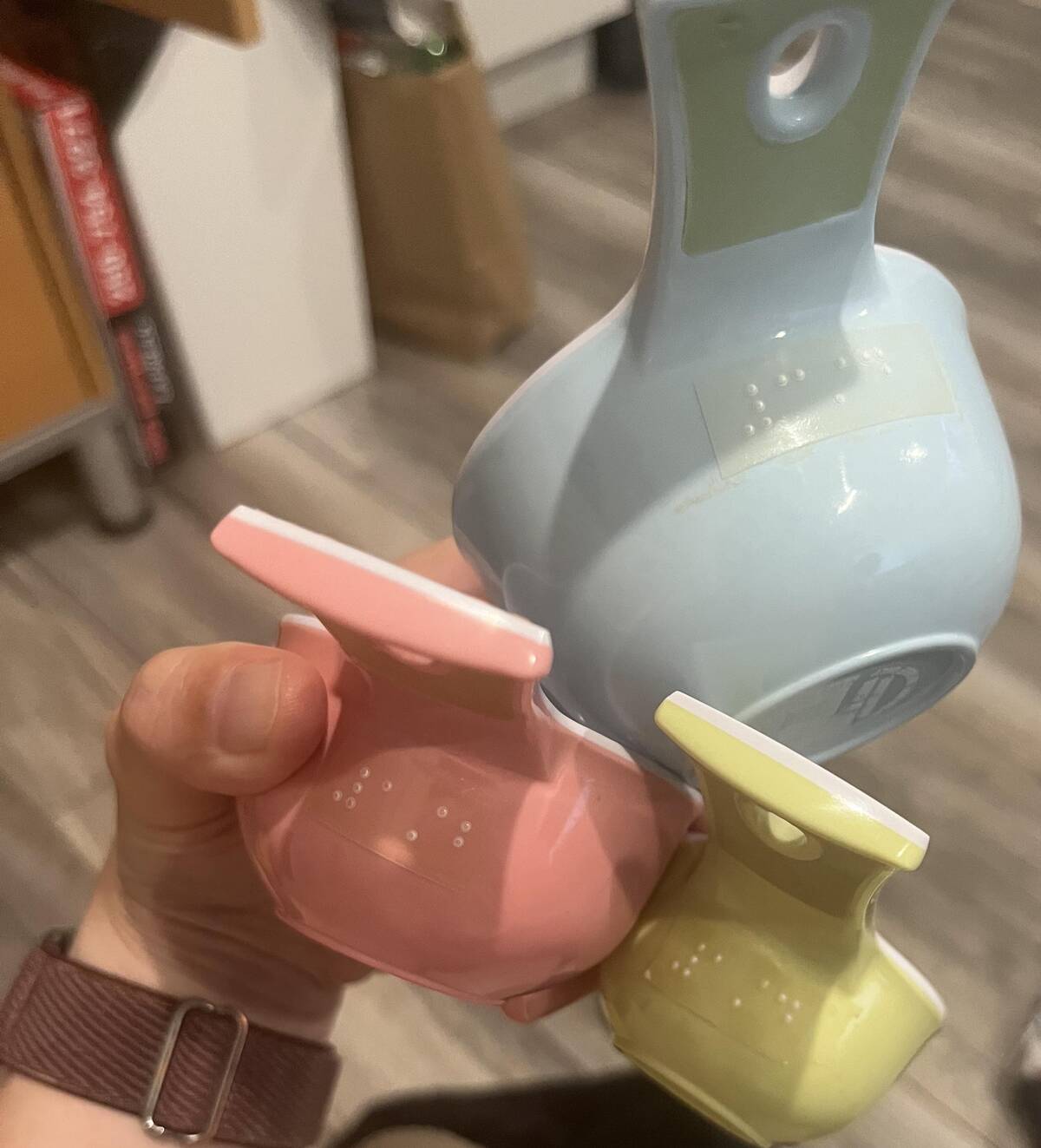 Whoa, the measuring cups at our Airbnb are only labeled in Braille! Such a considerate detail, but now I want to learn Braille just to bake cookies. It’s cool to see accessibility built right in, even in random kitchens.