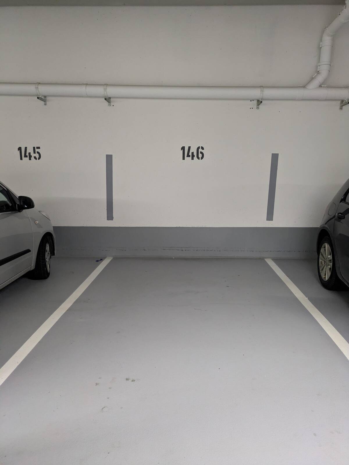 Parking always stresses me out, but this is genius! The lines go right up the wall. No more excuses for crooked parking jobs—just follow the stripes all the way up. Simple, effective, oddly satisfying.