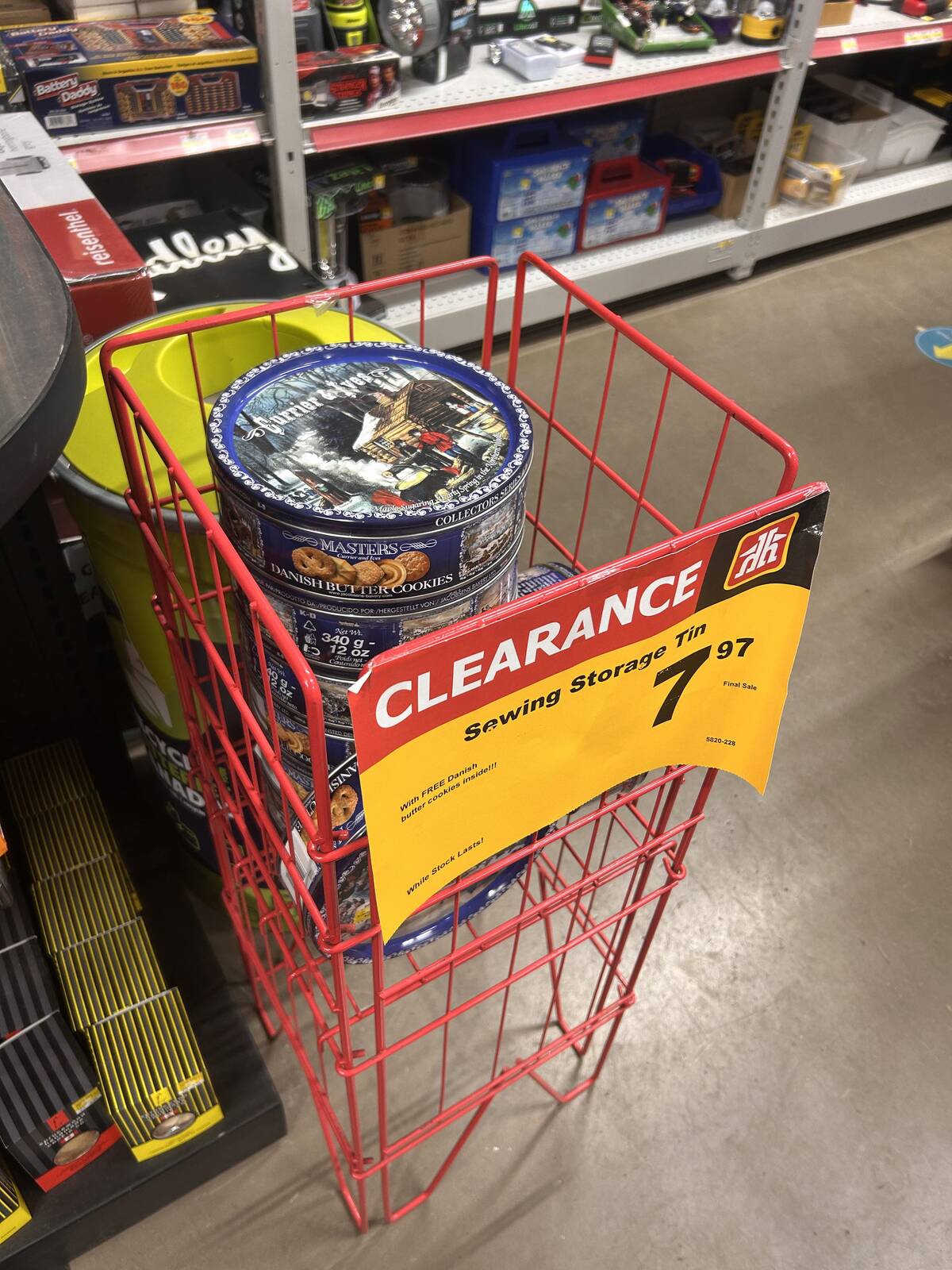 Sewing storage tins on clearance that come with free Danish cookies? It’s like the universe finally admitted what we always knew. Nobody actually uses them for just sewing supplies – it’s where childhood dreams and hidden treats go to live together.