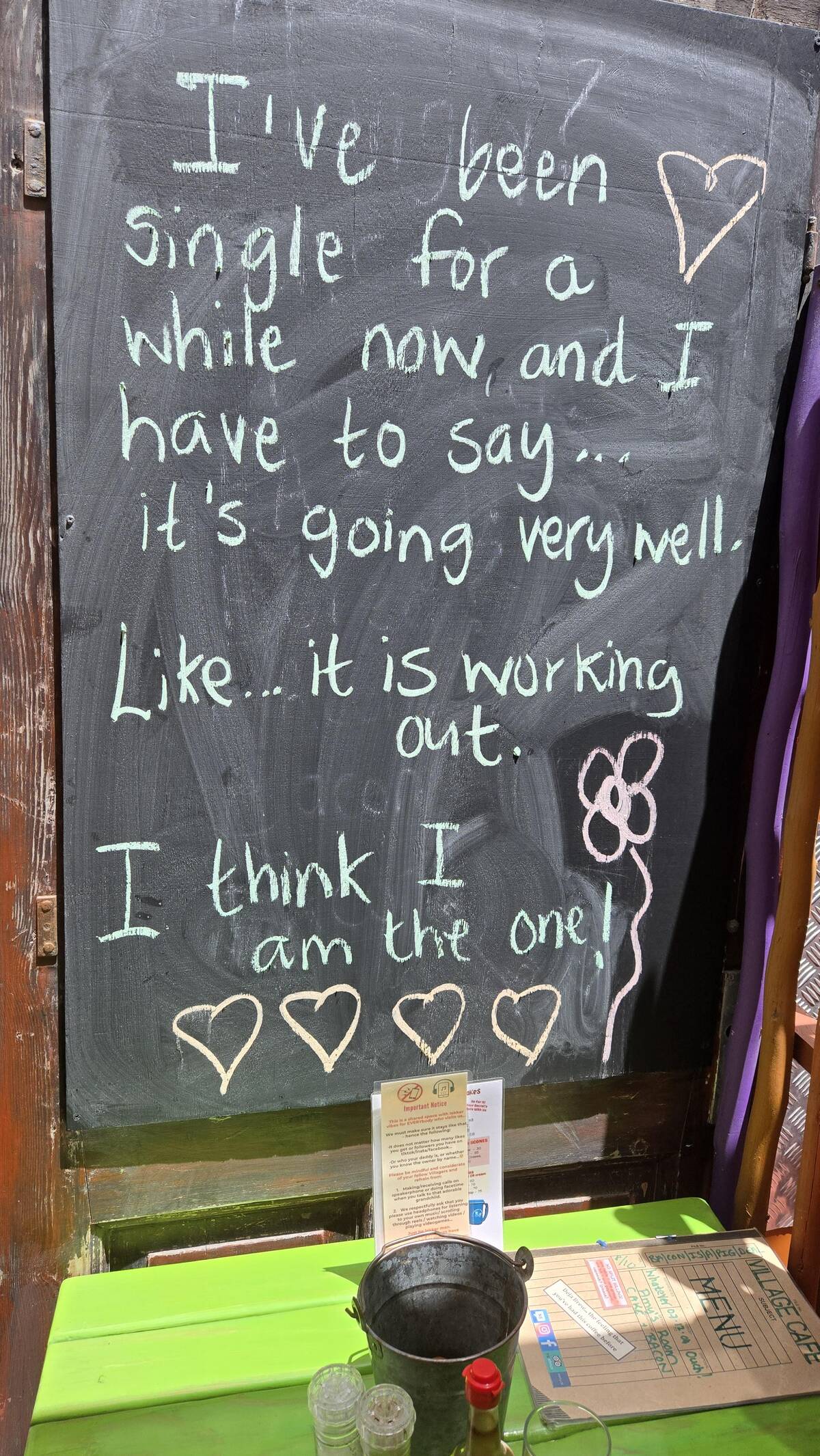 Self-love at its finest. This chalkboard gets it – sometimes you have to take yourself on a date and be your own favorite company. Honestly, this is the best kind of table for one energy. Who needs anyone else when you’re this awesome?