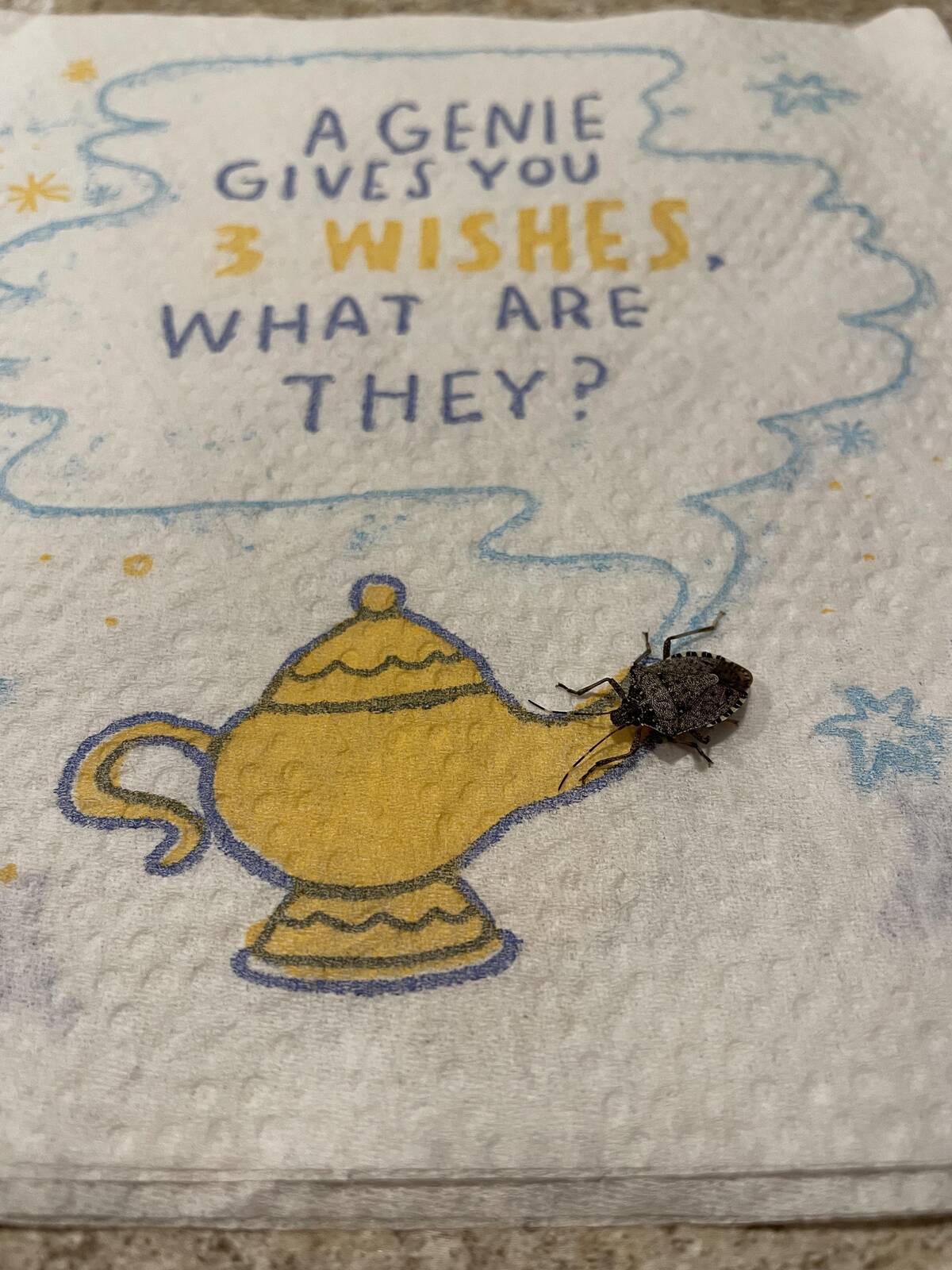 Just my luck to pull out a napkin and get a surprise visitor tagging along. Is that some extra protein, or just a bonus wish from the ‘genie’? Unwrapping one of these is always a gamble, but this is a whole new level of unexpected.