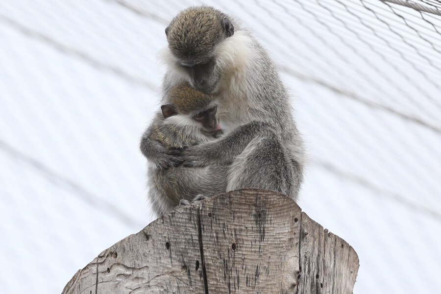 Be sure to catch the monkey mama cuddling her baby to keep warm in the chilly weather!
