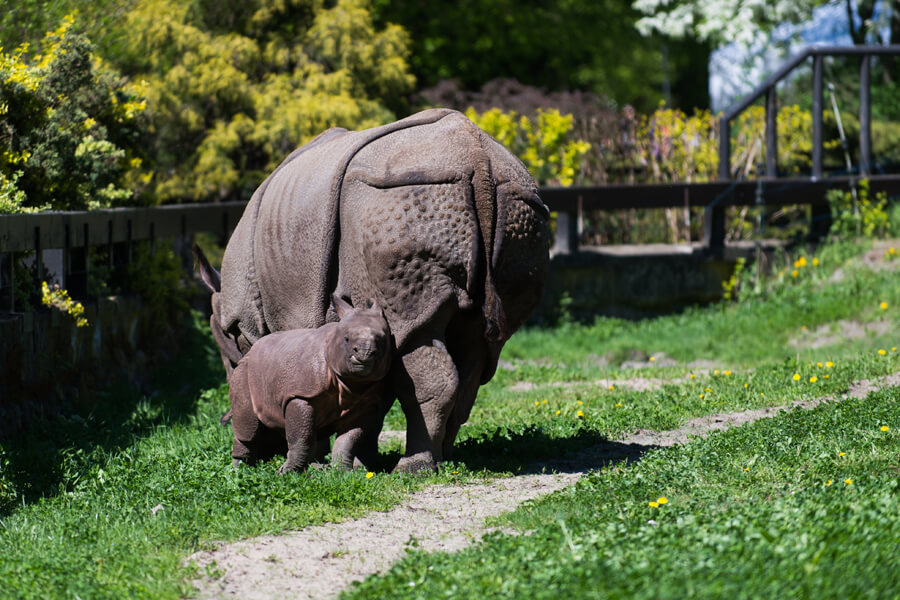 Say hello to Yang, a newborn rhino at the Warsaw Zoo. One-month-old at the time this picture was taken, the weather was perfect for Yang and his mother to enjoy the outdoors together.