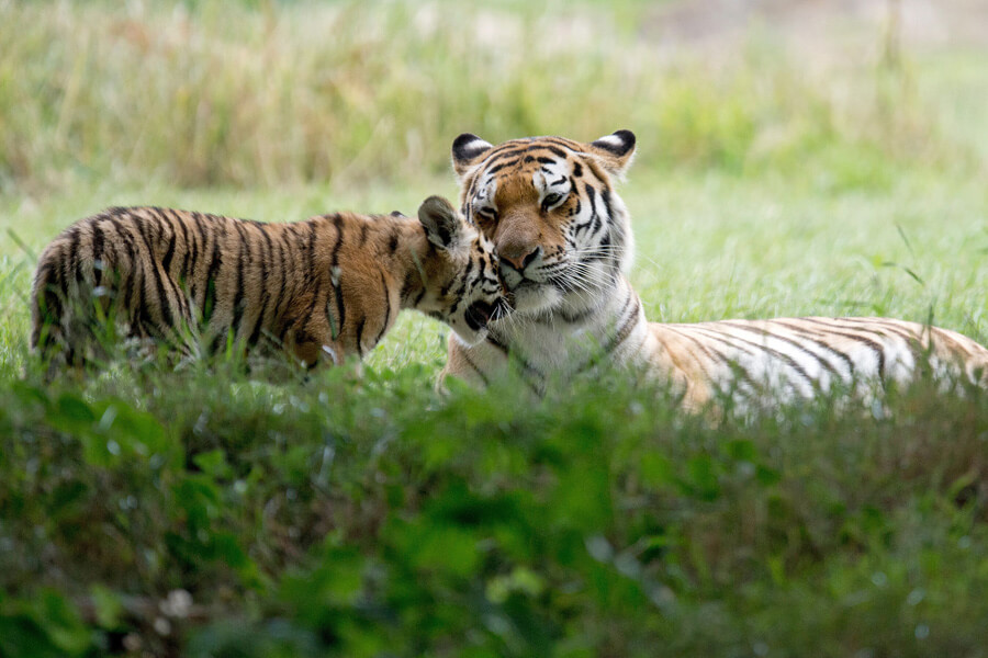 This heartwarming image of a tiger caring for her cub is enough to make anyone’s heart swell. The four-month-old Amur tiger cub pictured above is thriving in a nature reserve in England.
