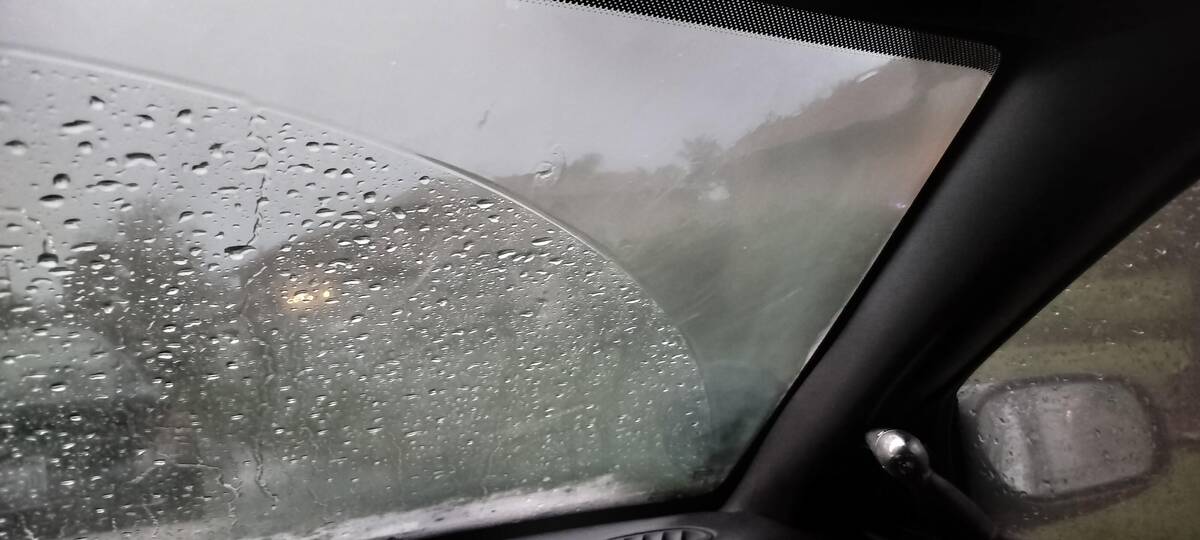 That windshield line is like magic—one side’s got rain beading perfectly, while the other’s large and in charge thanks to the wiper. It’s oddly satisfying to see science (or at least surface tension) in action during a storm.