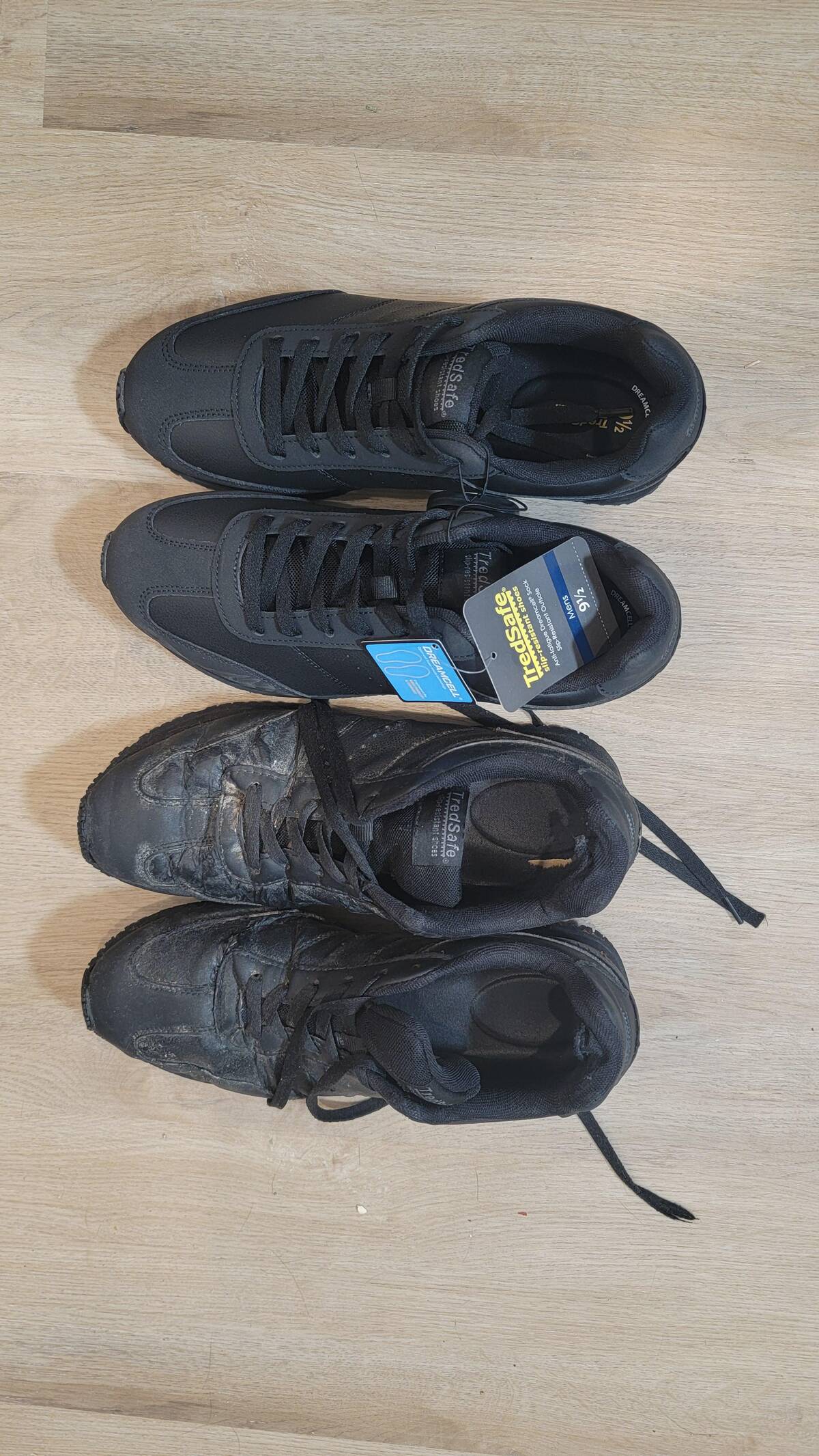 Nothing like a fresh pair of work shoes to remind you just how much your old ones have been through. One’s ready to run a marathon, the other’s been through a war. Upgrading never looked so dramatic!