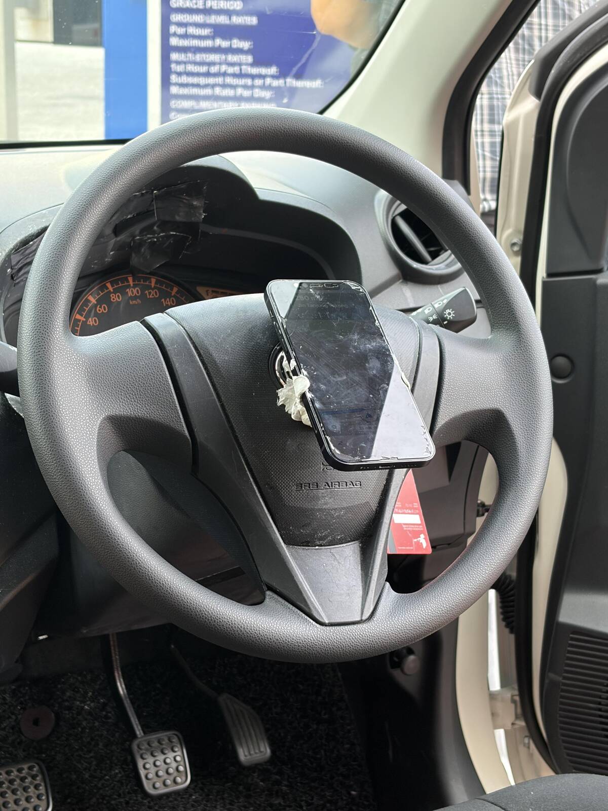 “Taxi driver glued his phone holder to the steering wheel”