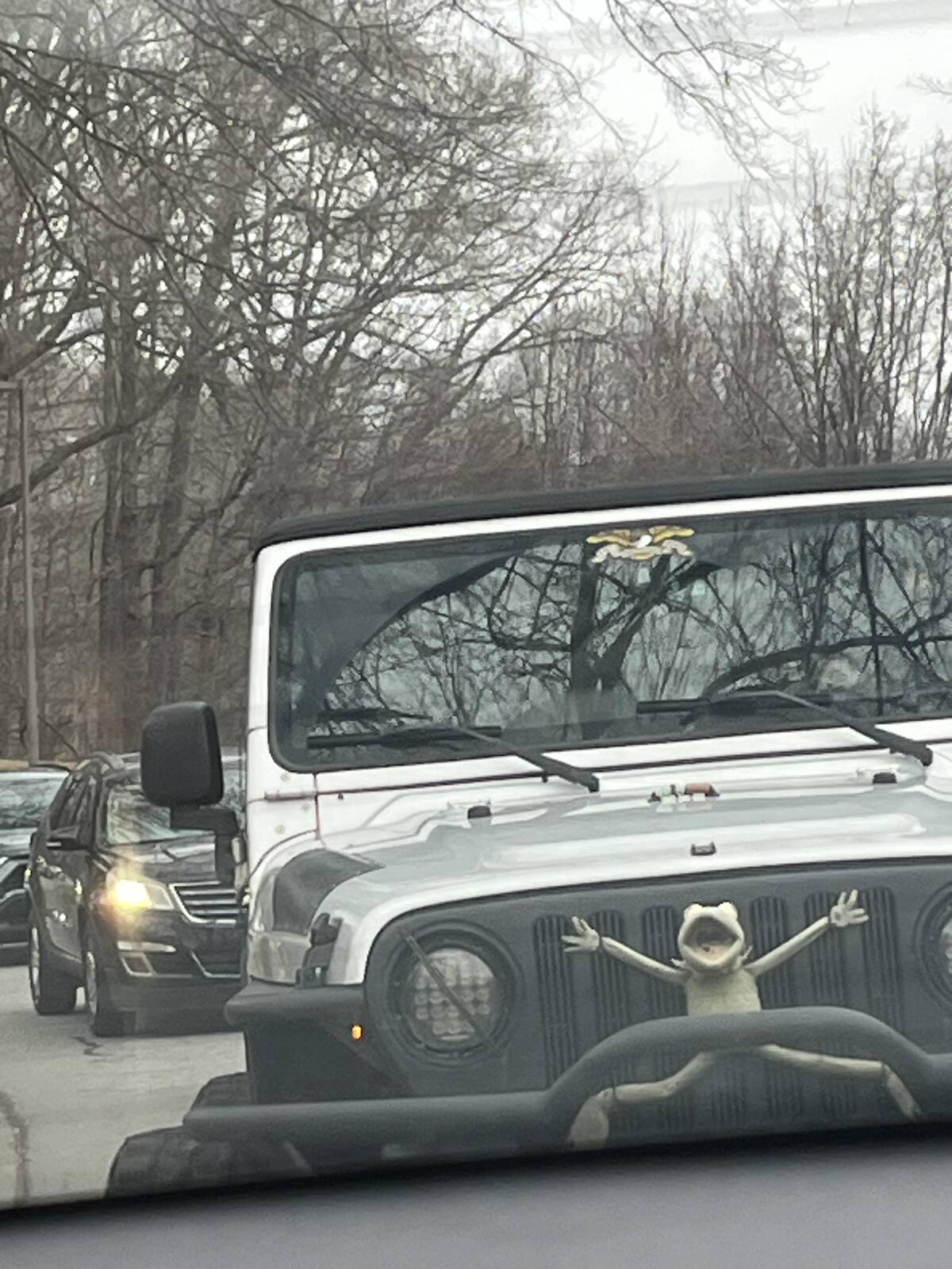“A car behind me today had Kermit the Frog at the front for some reason.”