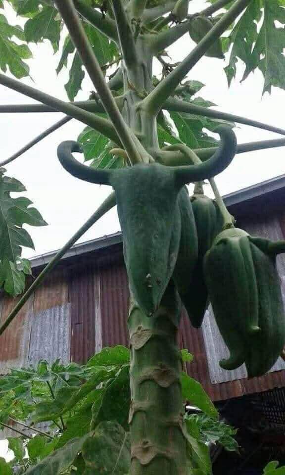 Okay, that’s not a papaya, that’s the guardian spirit of the plant world. It’s staring into my soul with those horns. If this grew in my yard, I’d have to give it a name and bring it offerings or something.