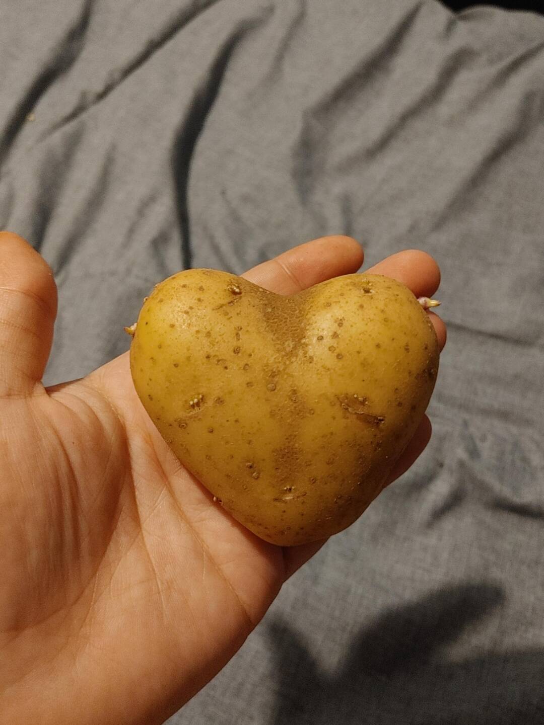 That’s hands-down the cutest potato I’ve ever seen. Seriously, who wants fries when you could give your root vegetable a little hug? I’m tempted to plant it and see if it grows more heart-shaped potatoes.