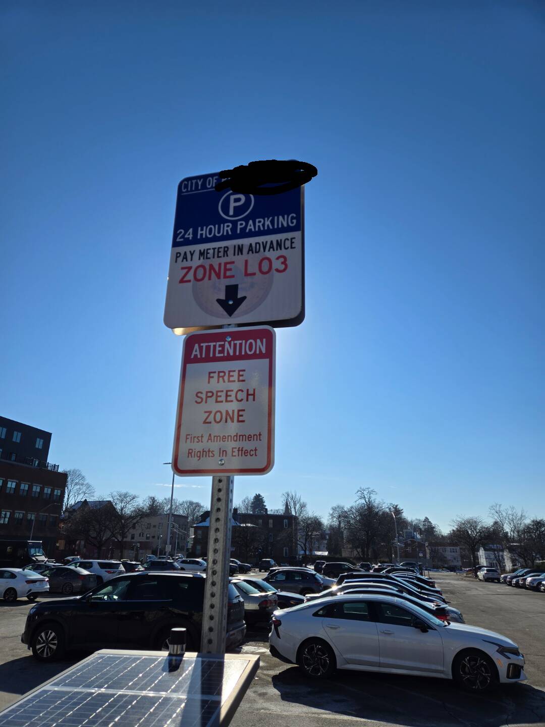 “My city has a metered parking lot reminding people to respect the First Amendment”