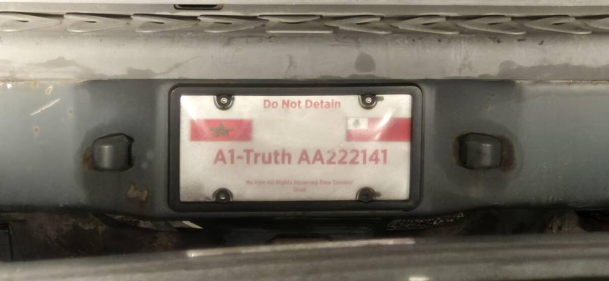 Spotted: the ultimate in sovereign style. ‘Do Not Detain’ and a bunch of flags on a license plate—subtlety is not on the menu tonight. I guess if you believe in it hard enough, your own plate is all you need for any adventure—legalities not included.