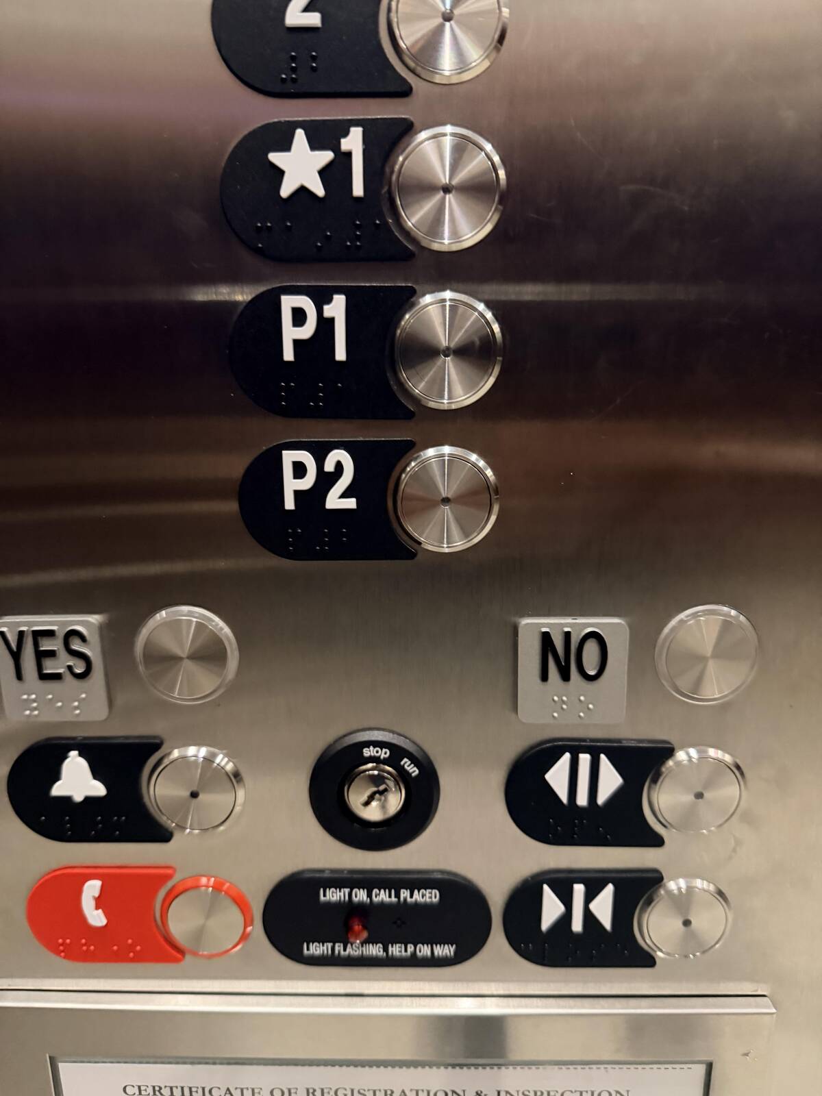 This elevator gets straight to the point—yes or no—and I’m not even sure what question I’m answering. Existential crisis, but make it mechanical. No explanation in sight, just mysterious binary options for the truly decisive (or hopelessly confused) riders.
