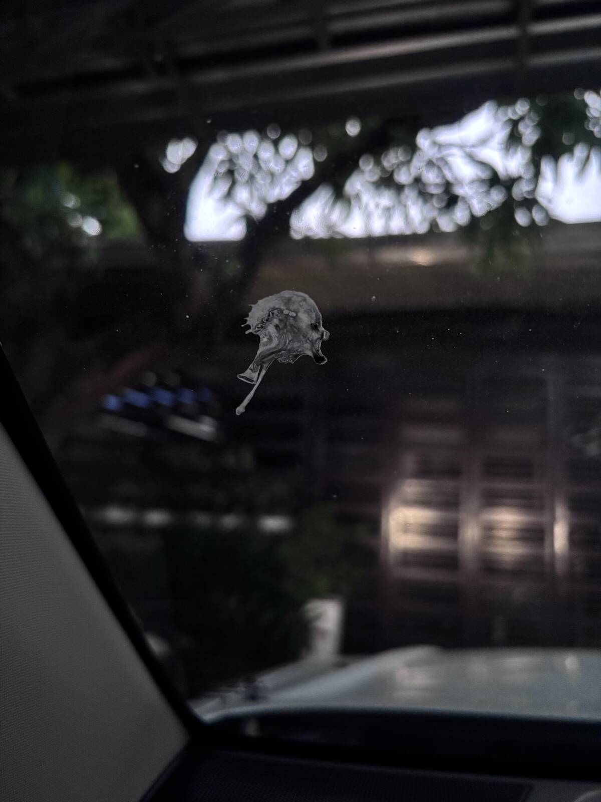“Bird poo on car window looks like a side view of an old man”